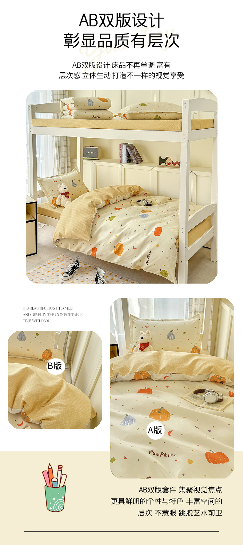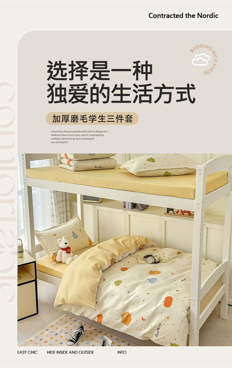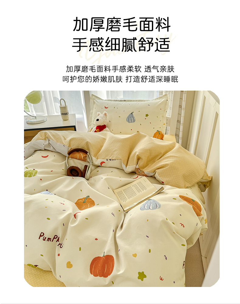 当前位置: 91家纺网 > 商品网购 > 床品套件 > 三件套 > 鑫宇 2025新款磨毛130g加厚学生宿舍三件套床单床笠款学生上下铺六件套 南瓜园