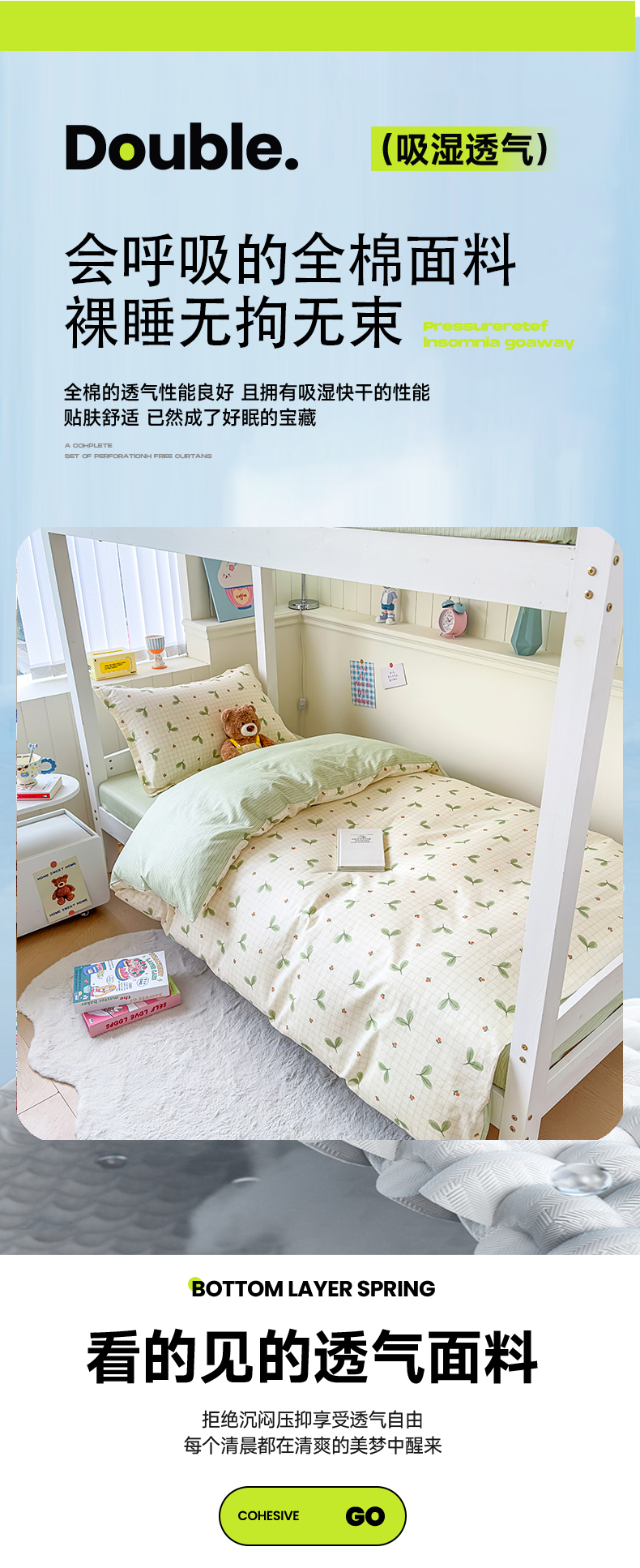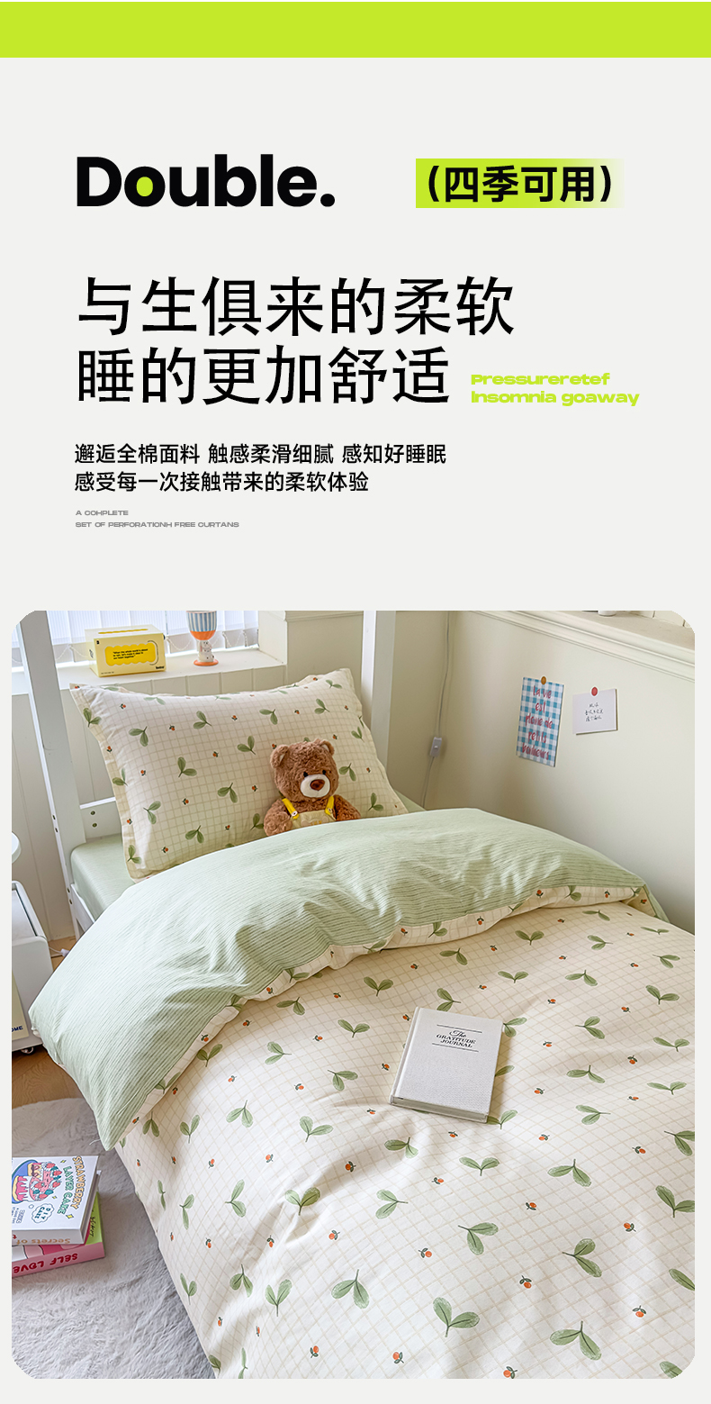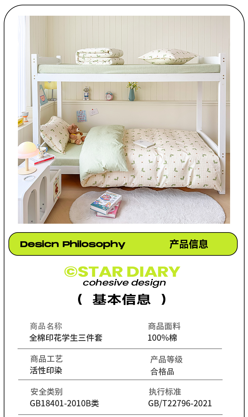 当前位置: 91家纺网 > 商品网购 > 床品套件 > 三件套 > 鑫宇 2025新款全棉纯棉13372宽幅学生上下铺三件套 春芽小月
