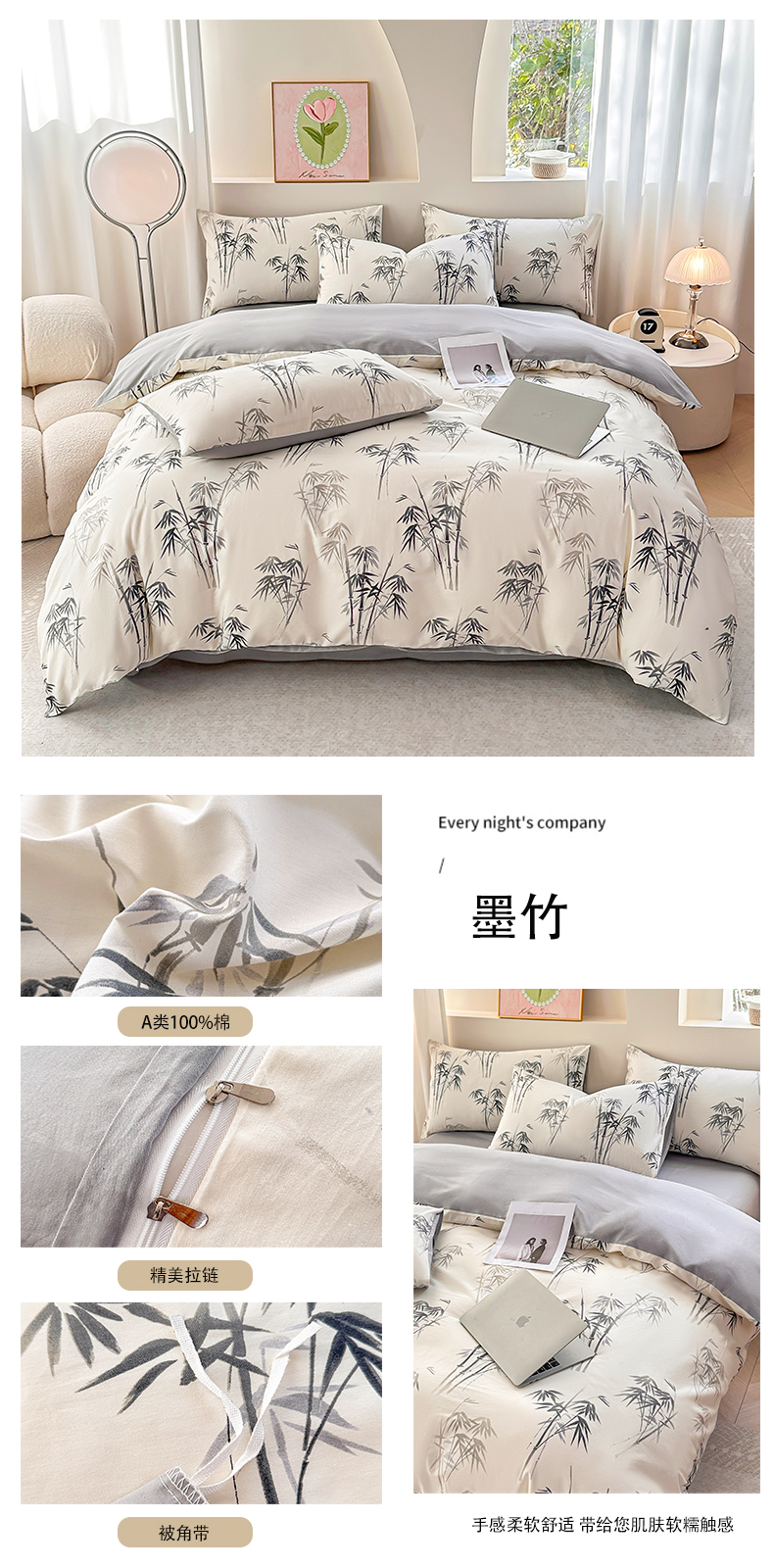 商品名称:宇彬家纺 2025直播新款13372全棉纯棉印花单双人被套喷气小清新简约热款学生被罩 墨竹新花型上新