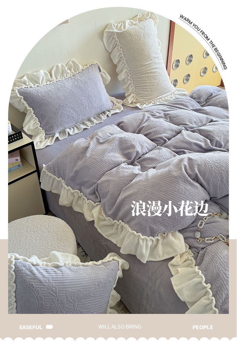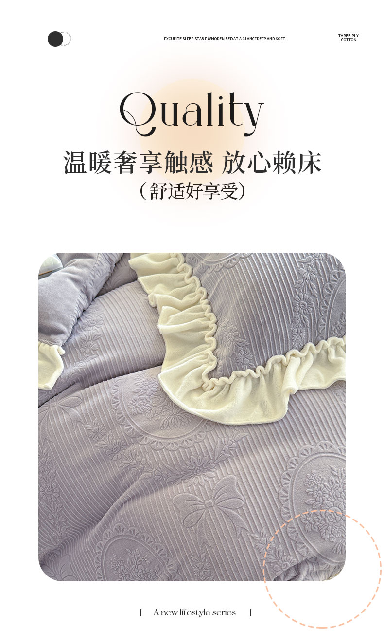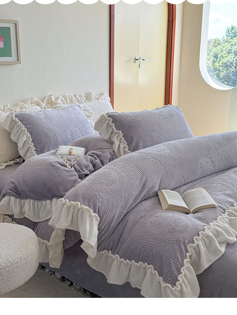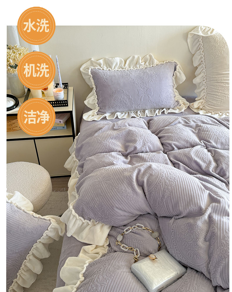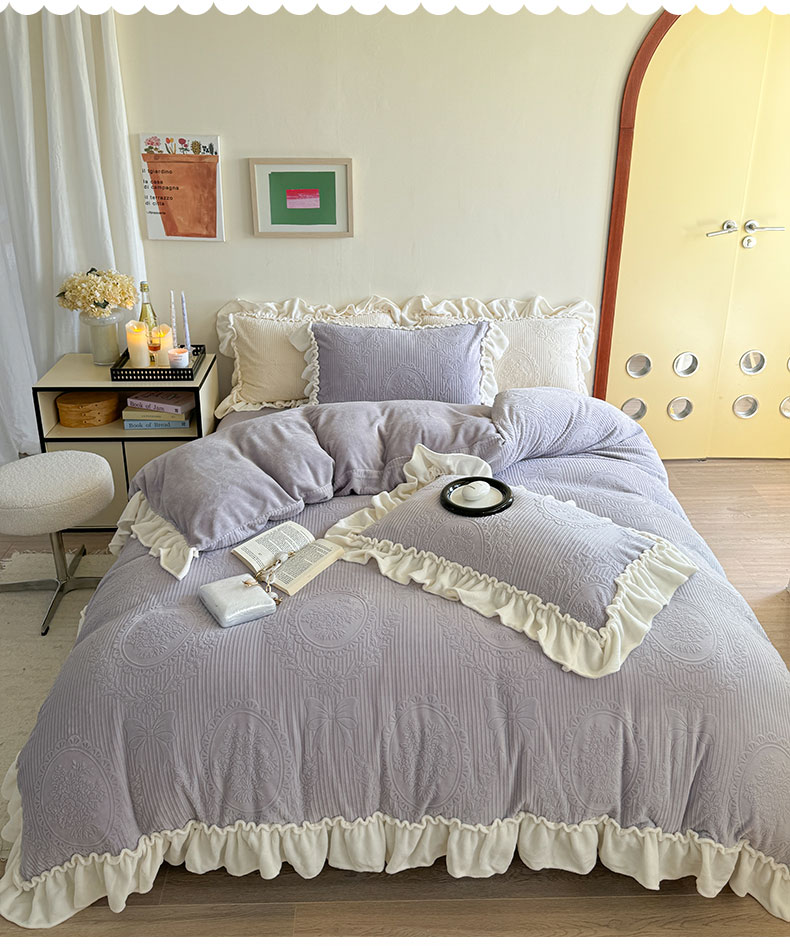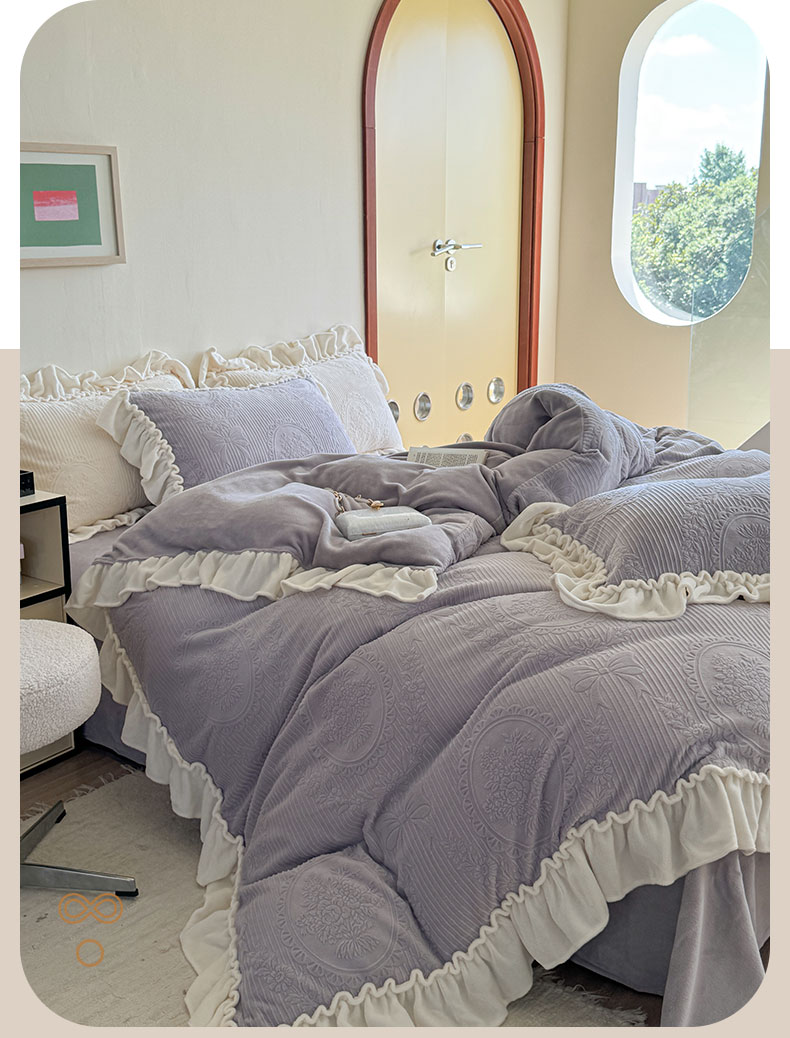 当前位置: 91家纺网 > 商品网购 > 床品套件 > 四件套 > 牛奶绒四件套 > 六巷胡同 2025新款轻法式公主蝴蝶结提花牛奶绒四件套-风格二 公主蝴蝶结-紫