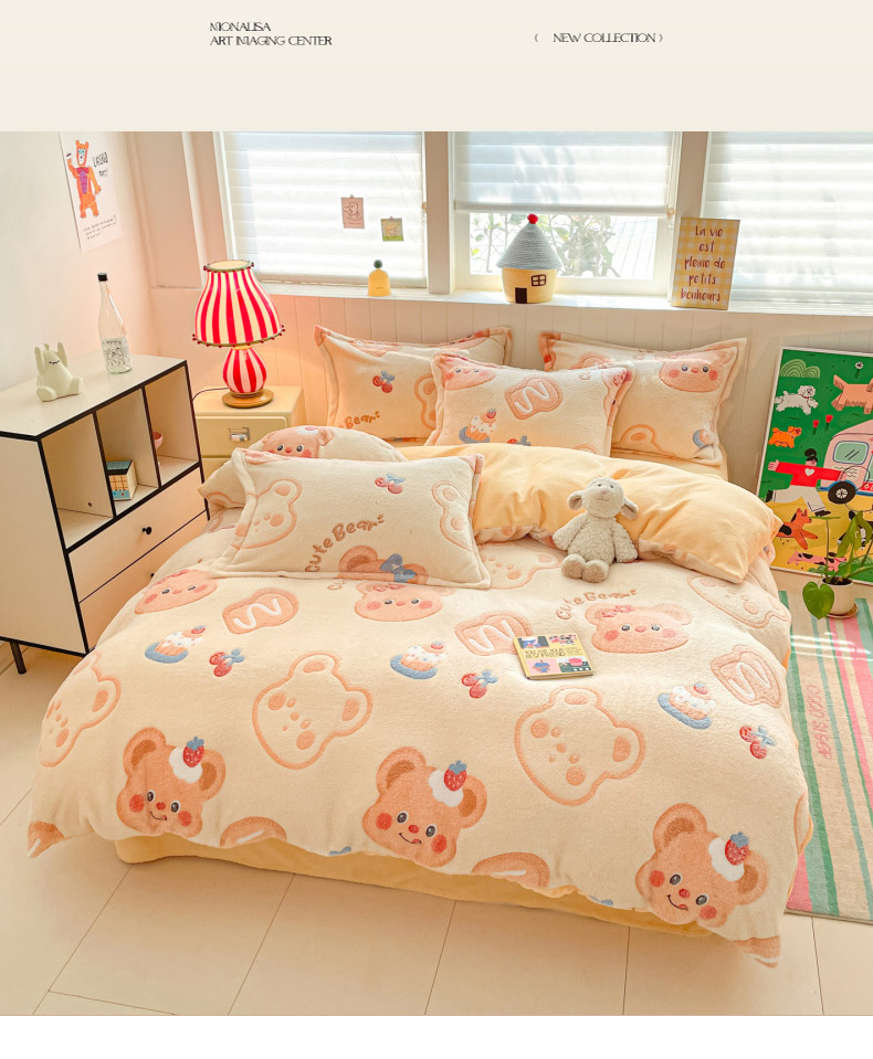 当前位置: 91家纺网 > 商品网购 > 床品套件 > 四件套 > 牛奶绒四件套 > 沐慕 2025新款A类200g加厚雪花绒180g牛奶绒四件套 黄油小熊