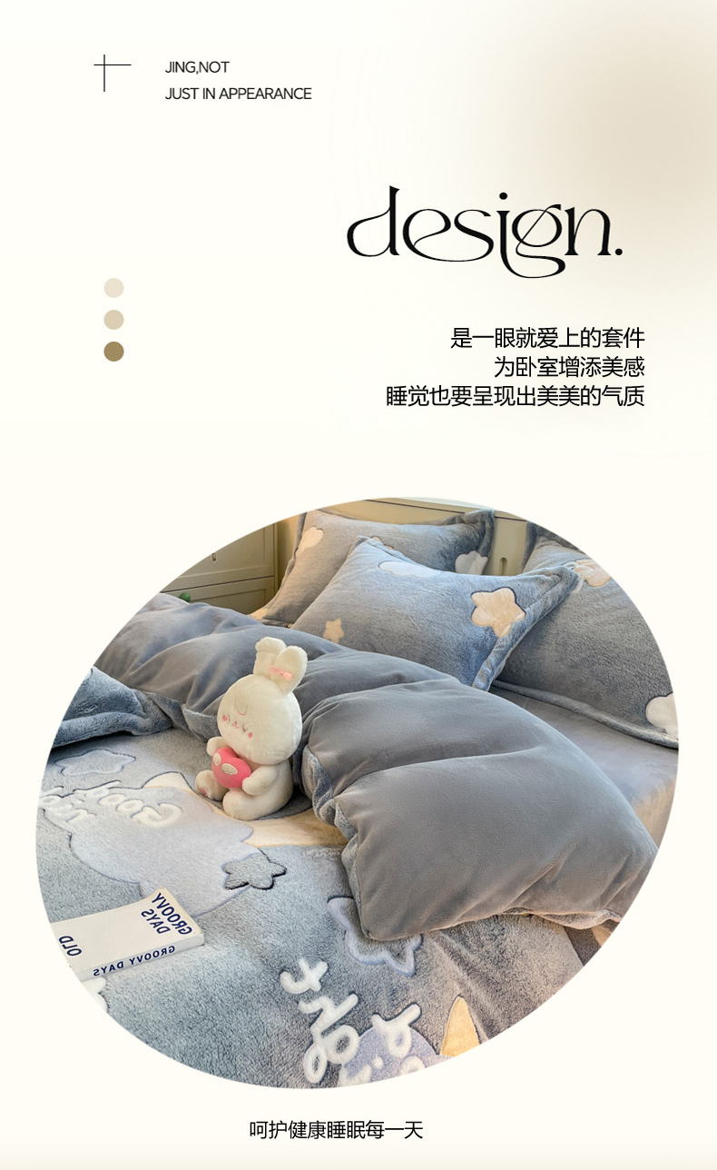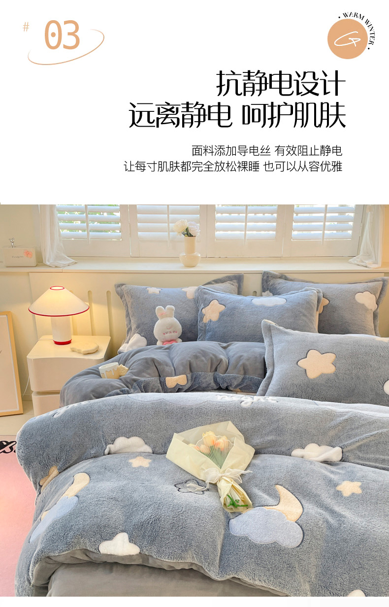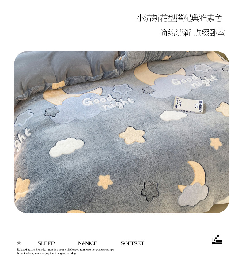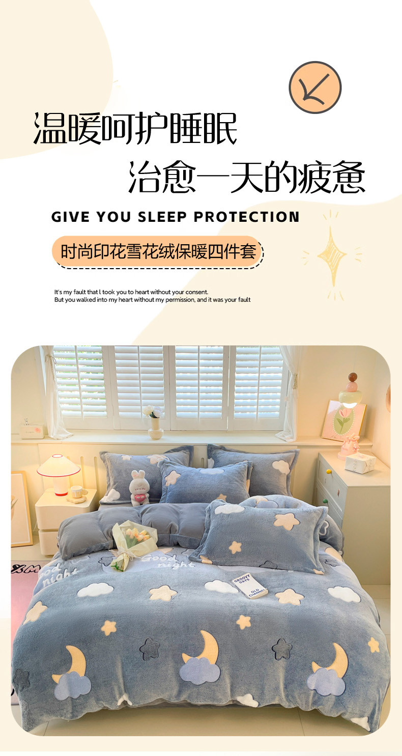 当前位置: 91家纺网 > 商品网购 > 床品套件 > 四件套 > 牛奶绒四件套 > 沐慕 2025新款A类200g加厚雪花绒180g牛奶绒四件套 星星月亮