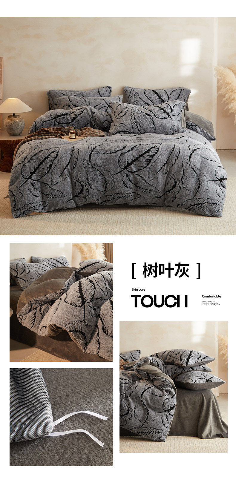 吾秀家居 2025新款牛奶绒提花绵羊绒四件套-羊绒系列 斑马绿