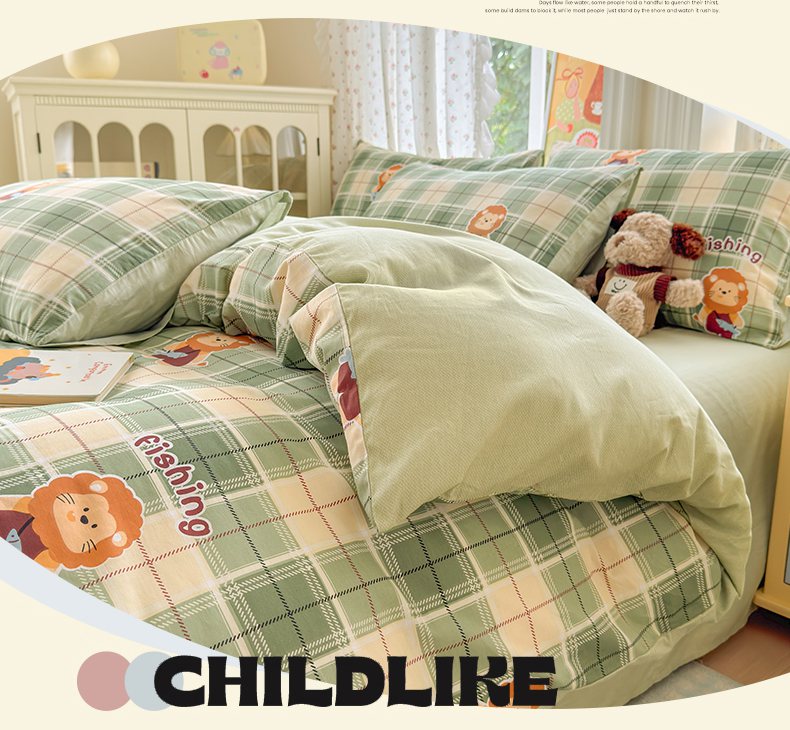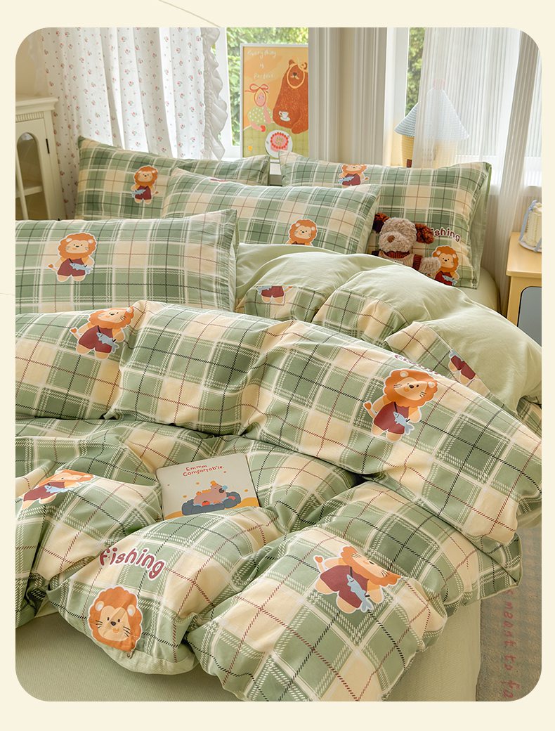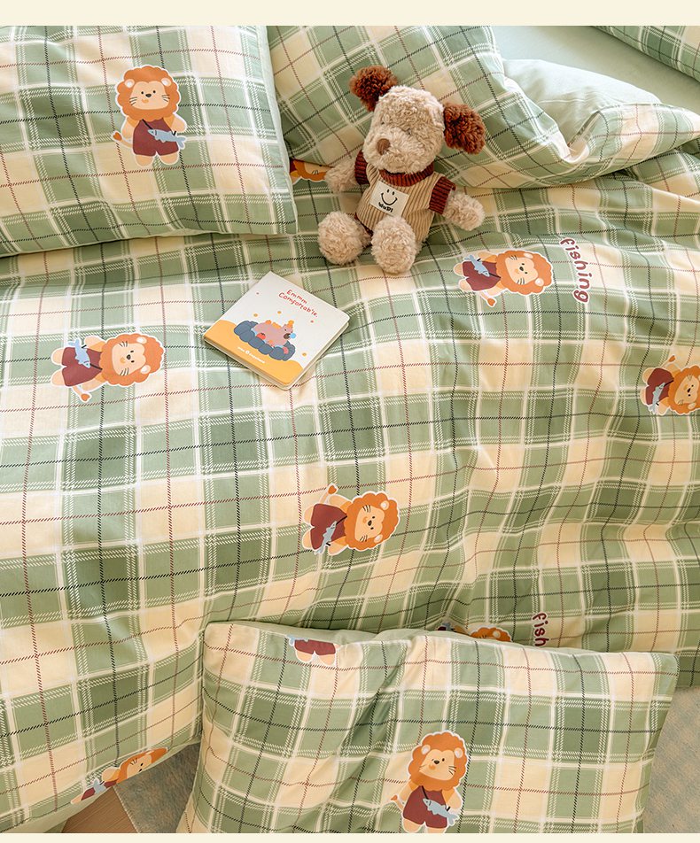 清雅福 2026春夏新品全棉13070萌趣系列单枕套 森林日记-绿格