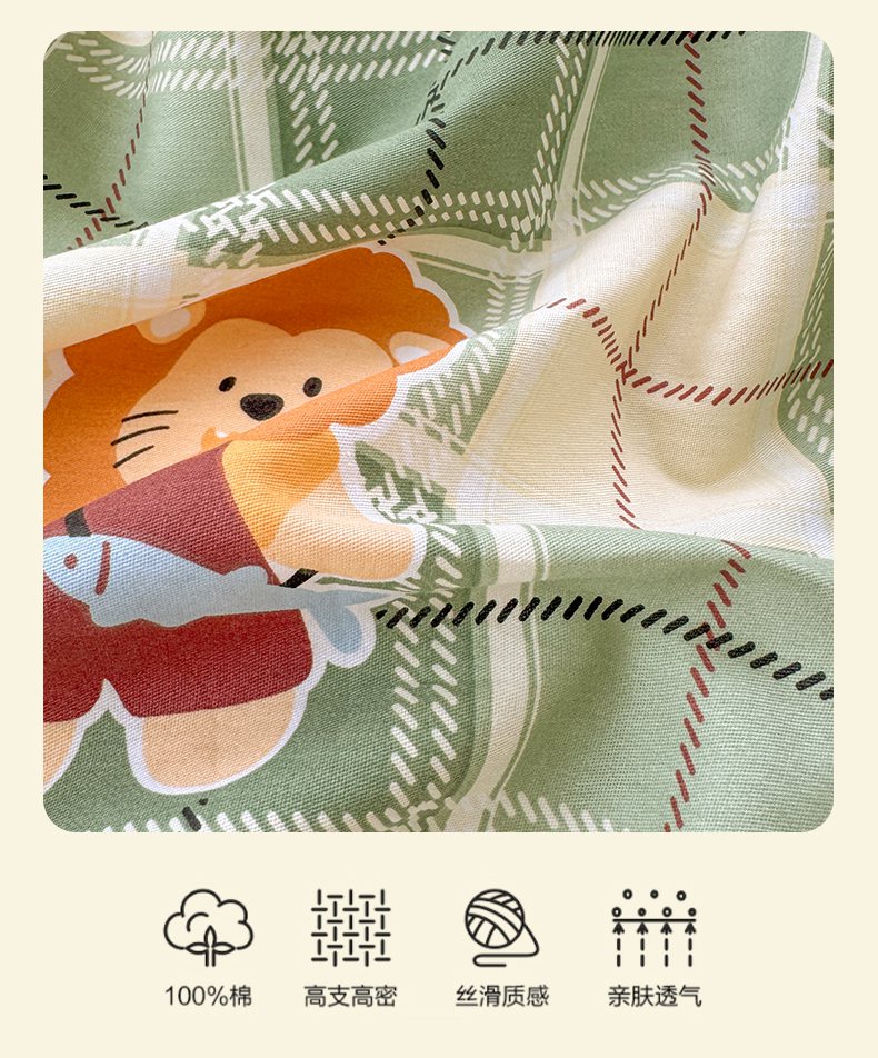 商品名称:清雅福 2026春夏新品全棉13070萌趣系列单枕套 森林日记-绿格