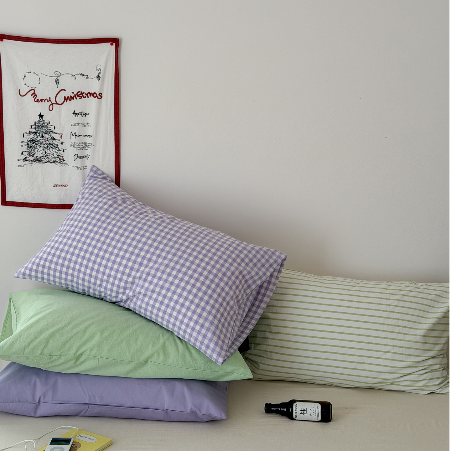 艾沁家纺 2026新款全棉纯棉色织水洗棉单品枕套 枕套单件3 浅绿