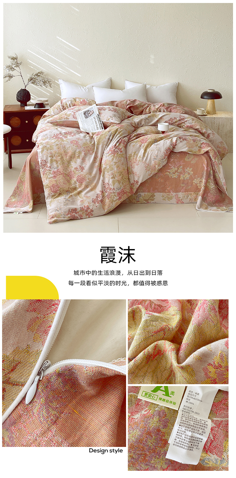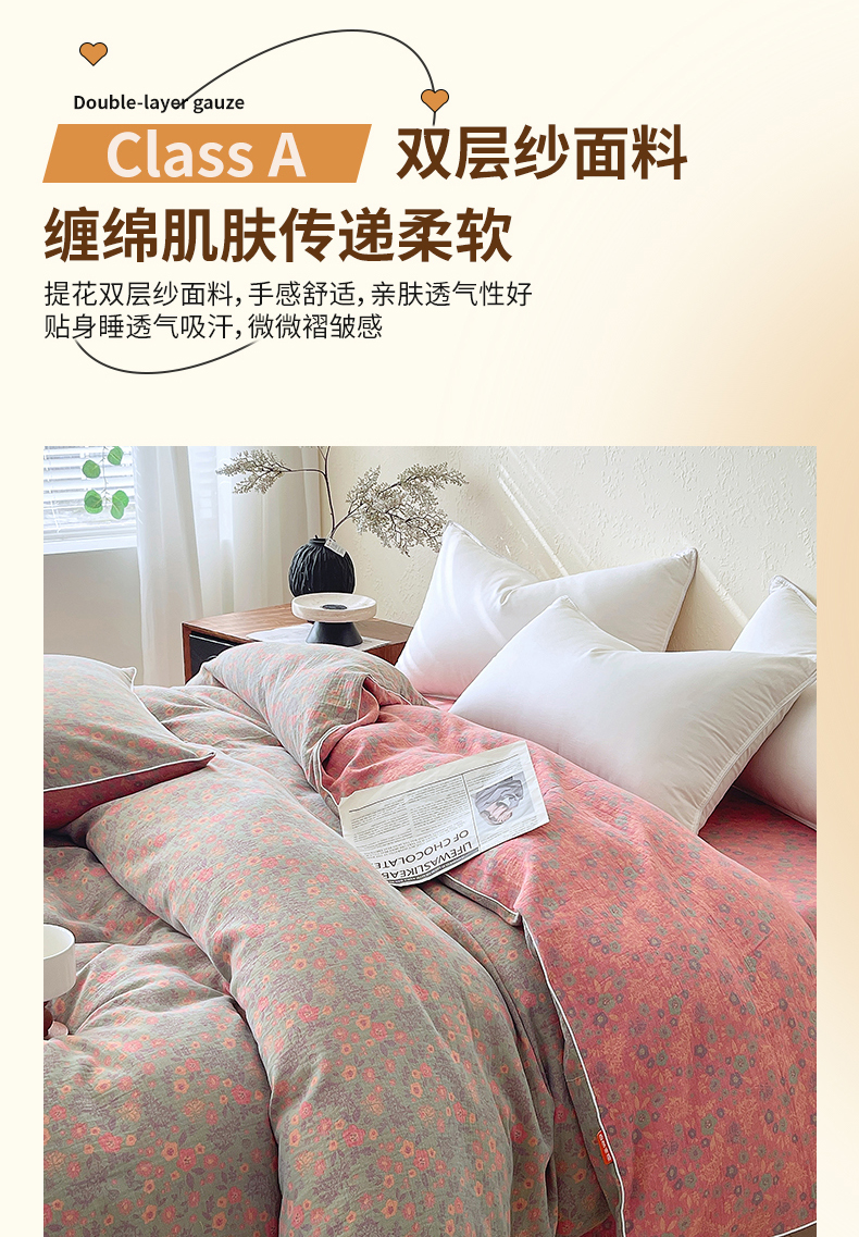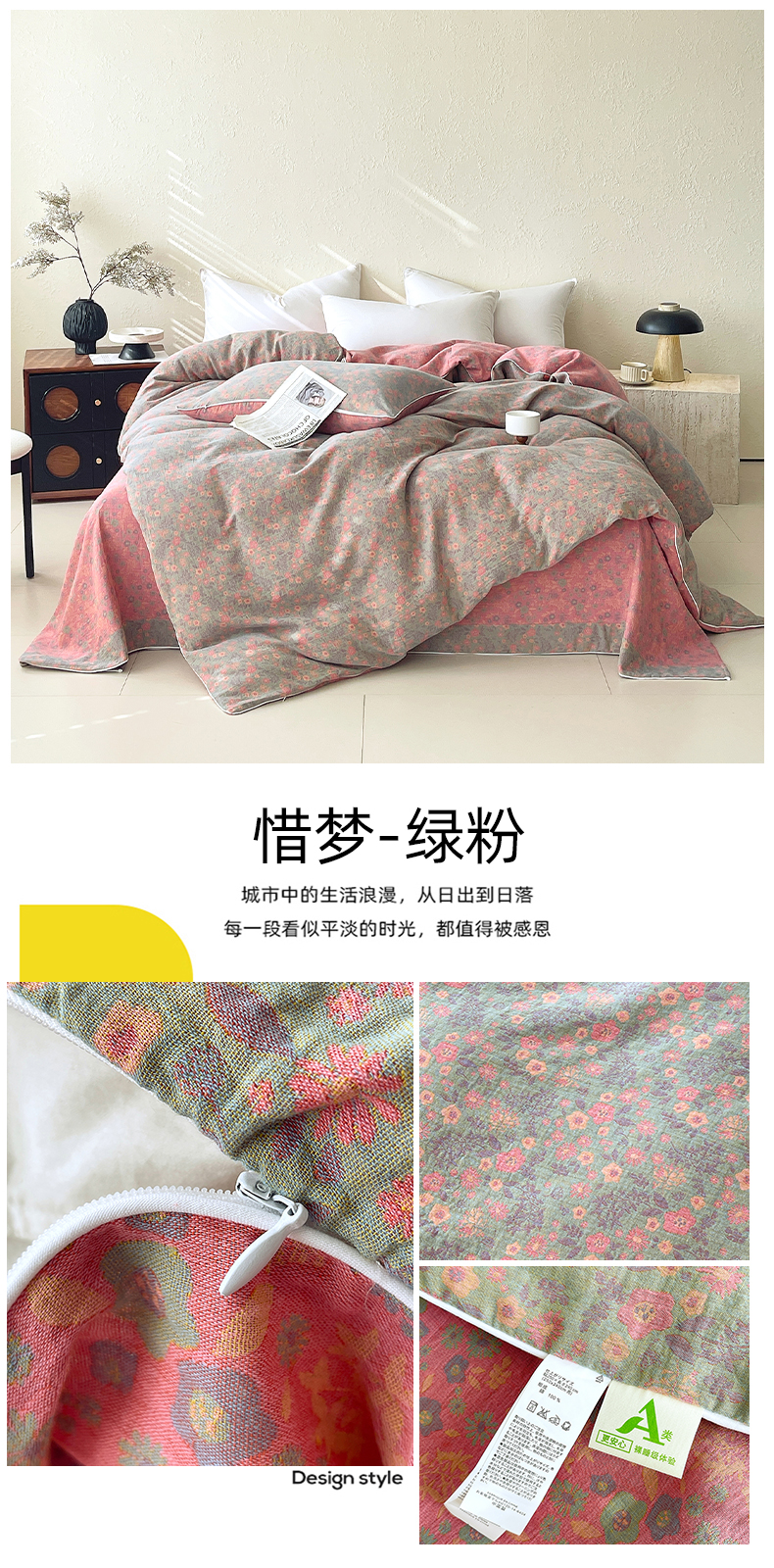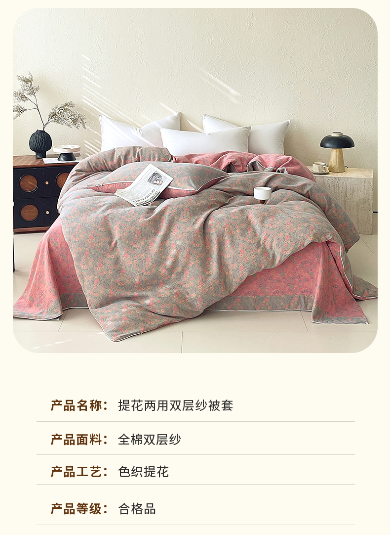 春皖家纺 2026春夏新款(正反两用)A类提花双层纱单被套 惜梦-绿粉