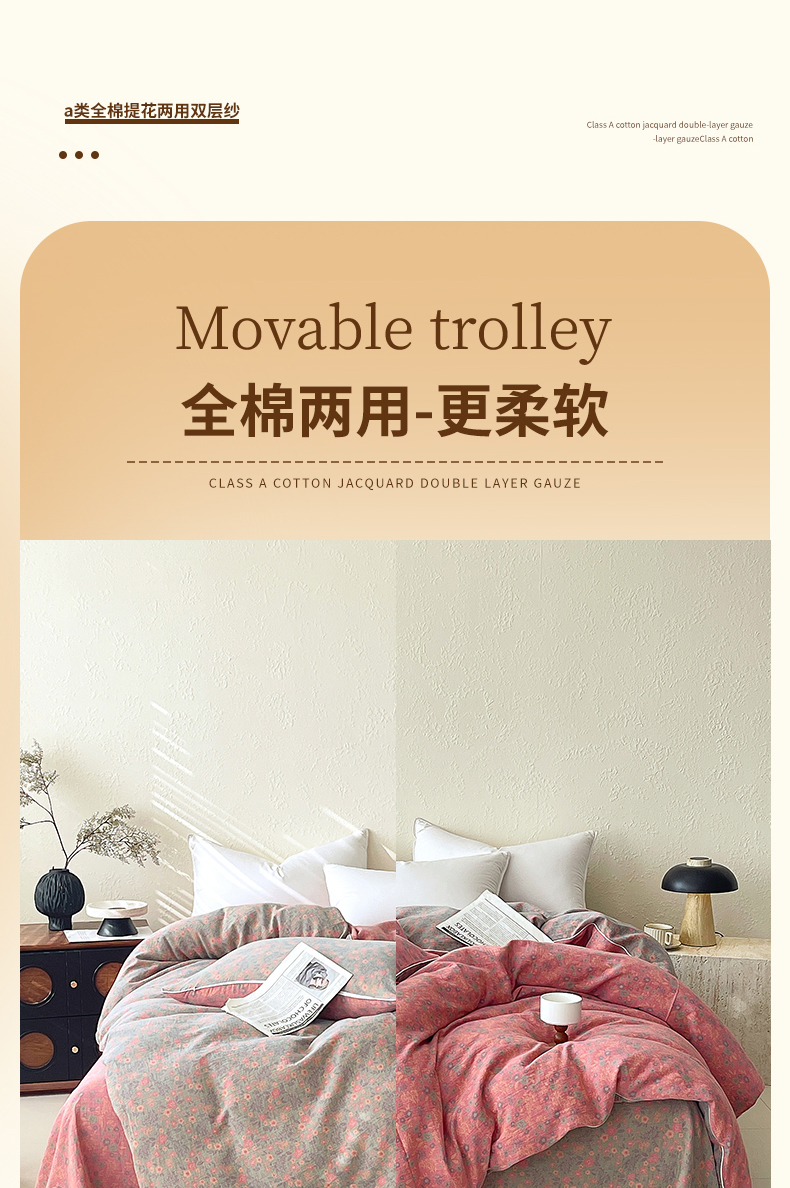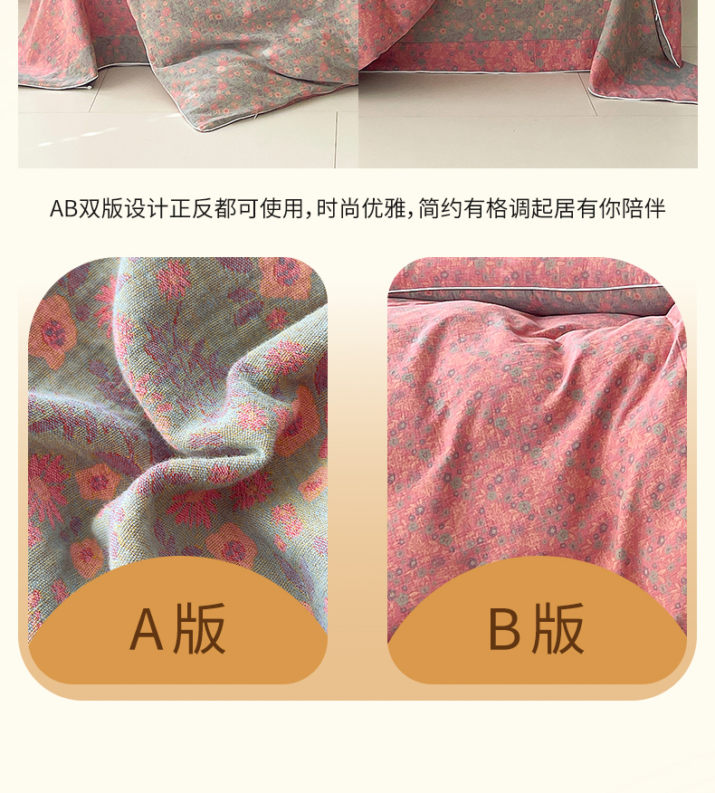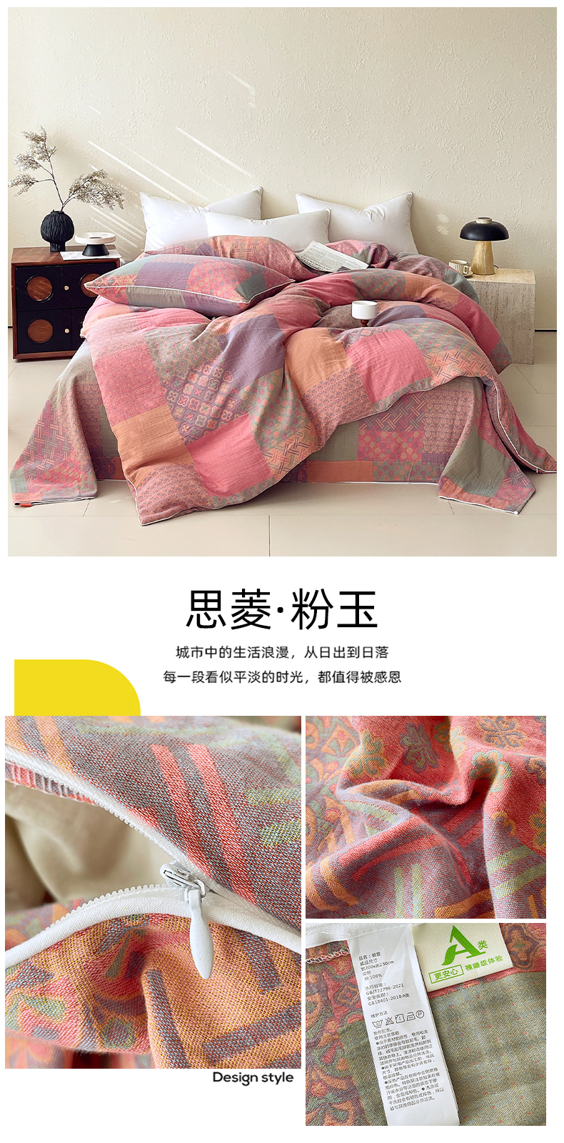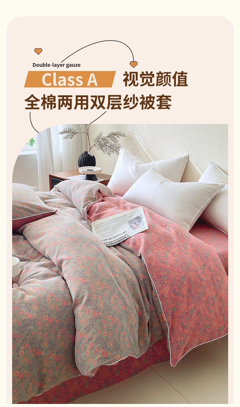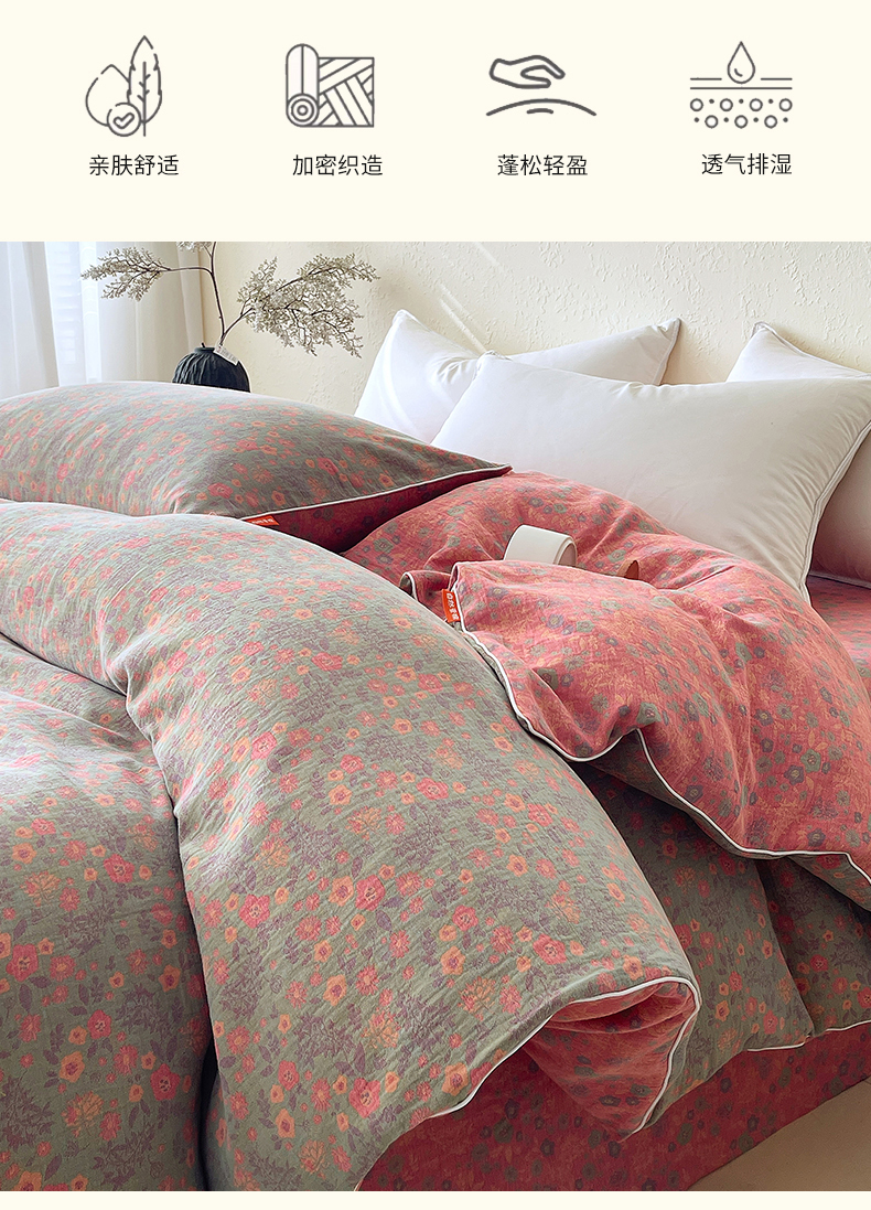 春皖家纺 2026春夏新款(正反两用)A类提花双层纱单被套 惜梦-绿粉
