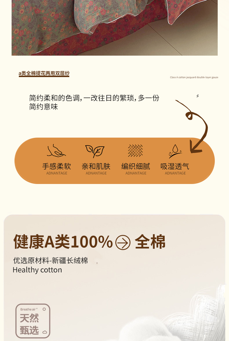 商品名称:春皖家纺 2026春夏新款(正反两用)A类提花双层纱单被套 惜梦-绿粉