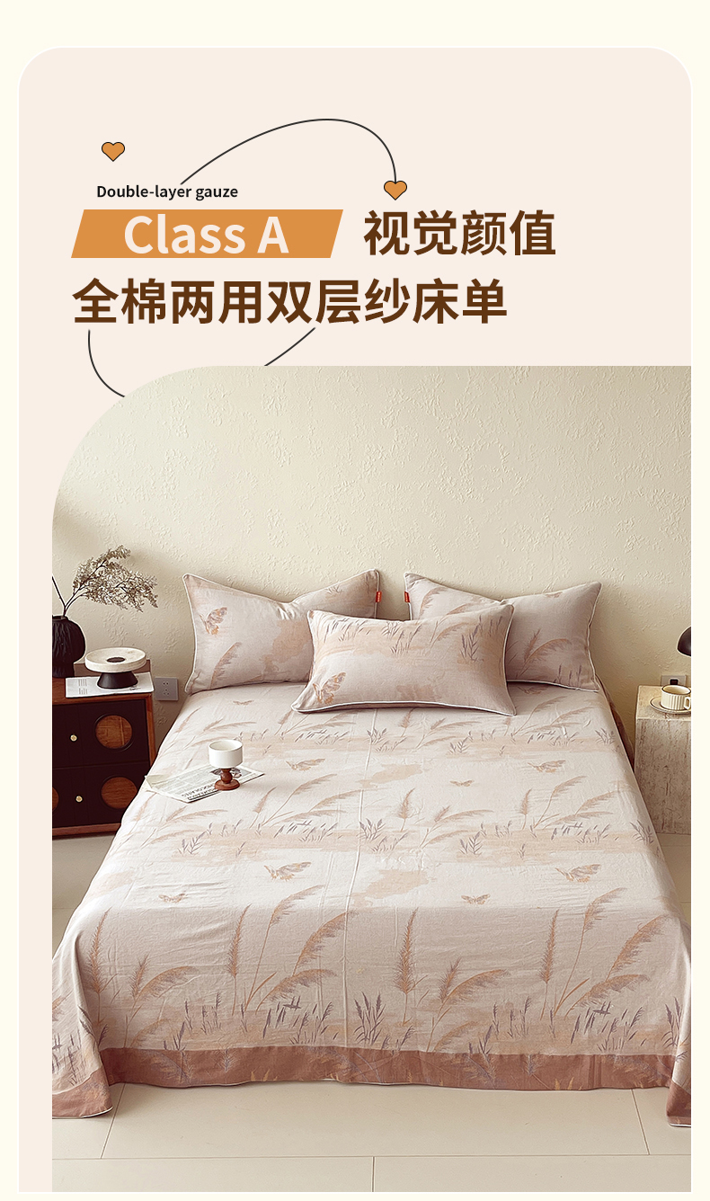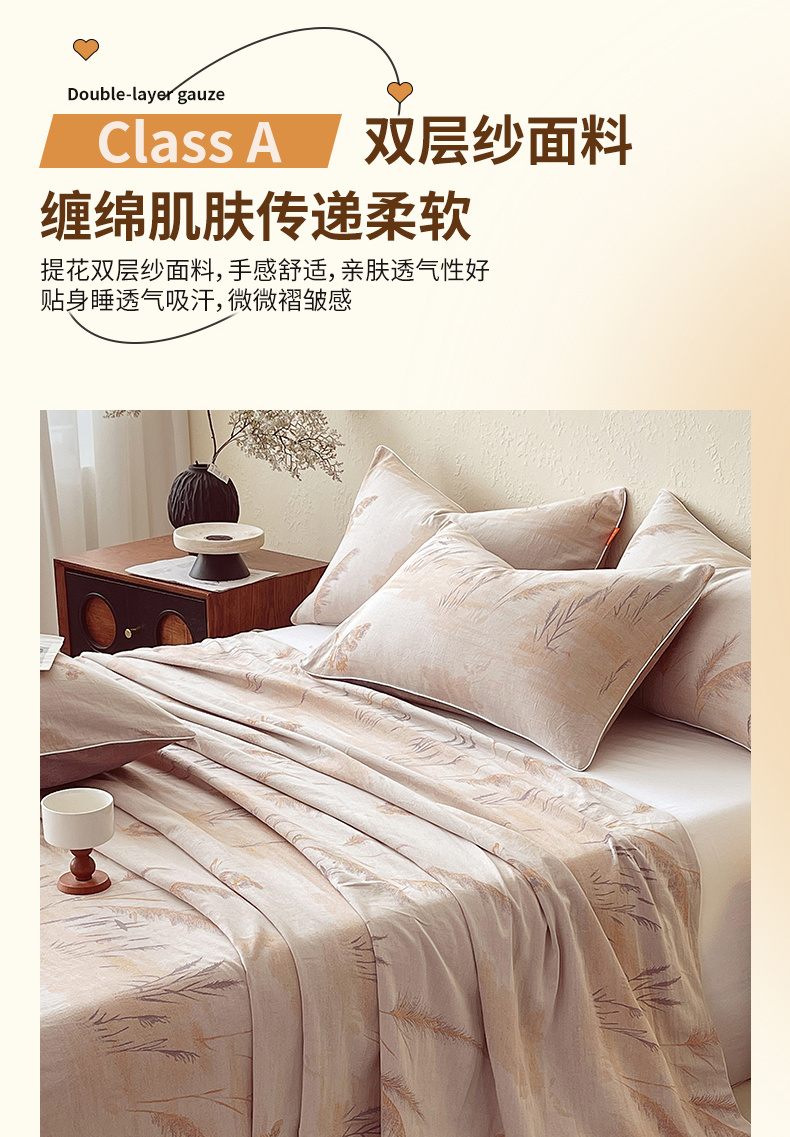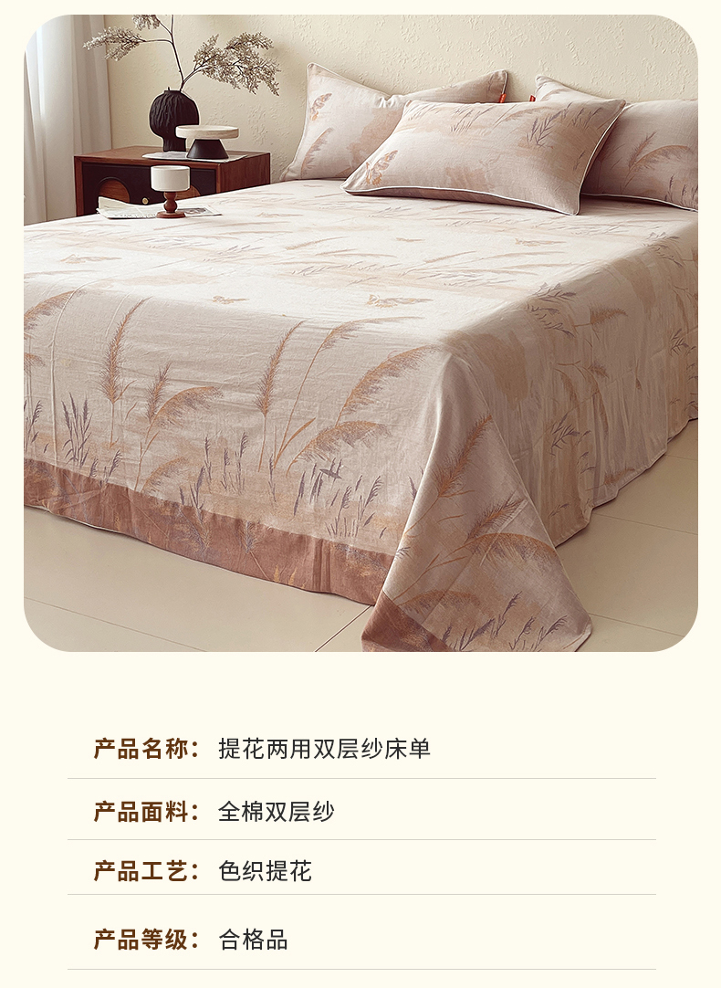 商品名称:春皖家纺 2026春夏新款(正反两用)A类提花双层纱单床单 瑾璃