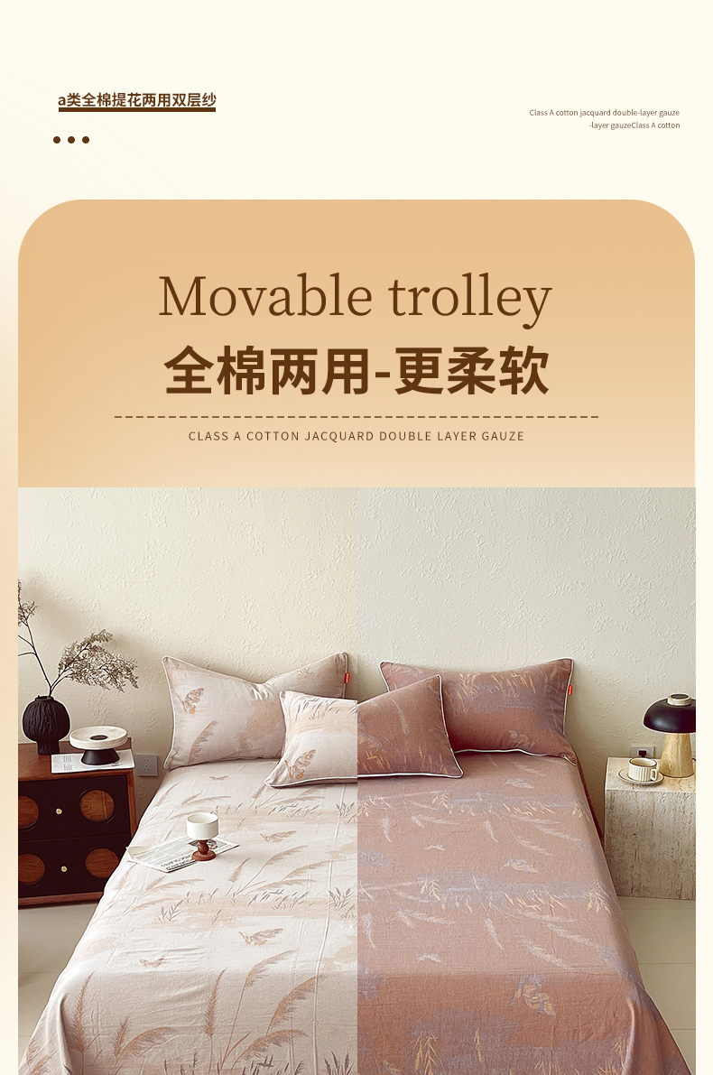 春皖家纺 2026春夏新款(正反两用)A类提花双层纱单床单 瑾璃