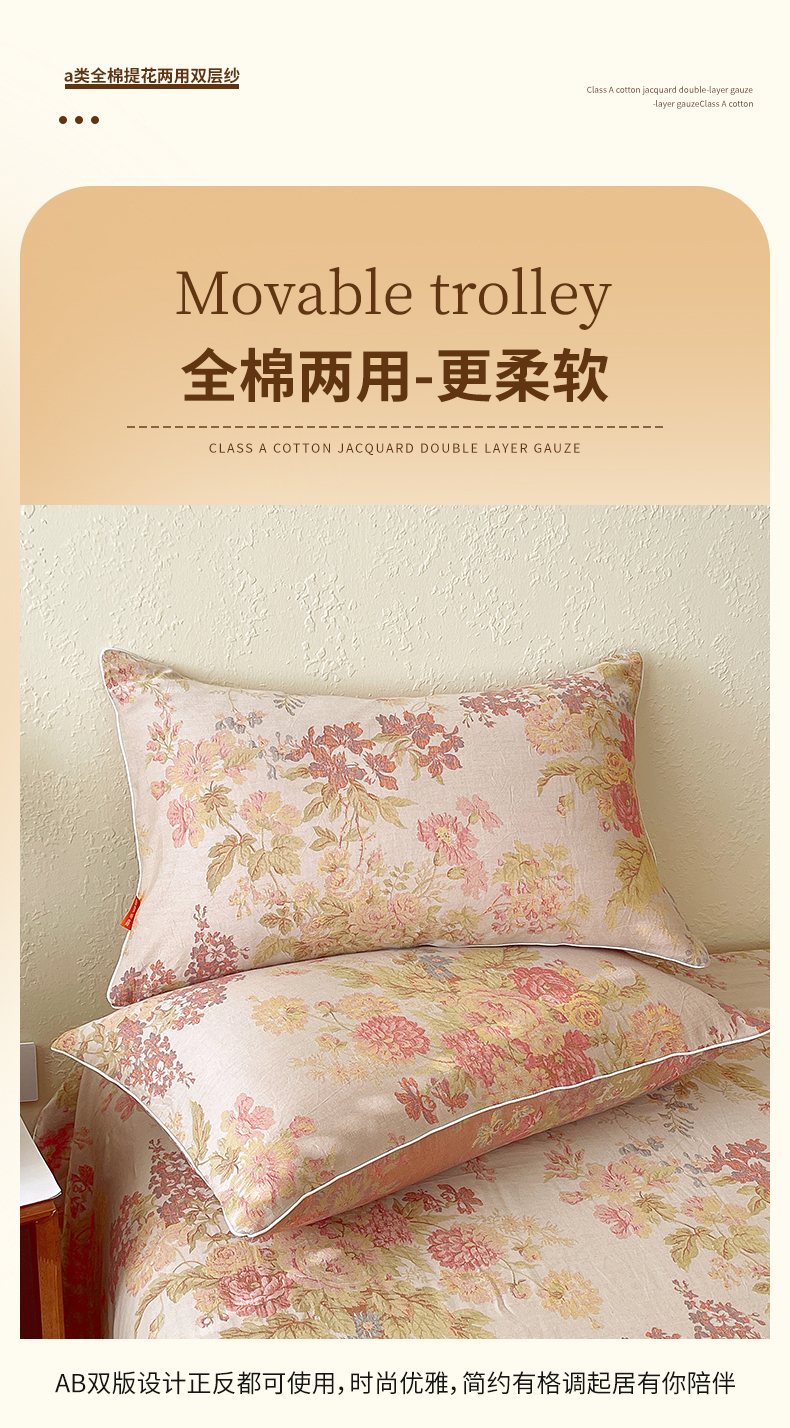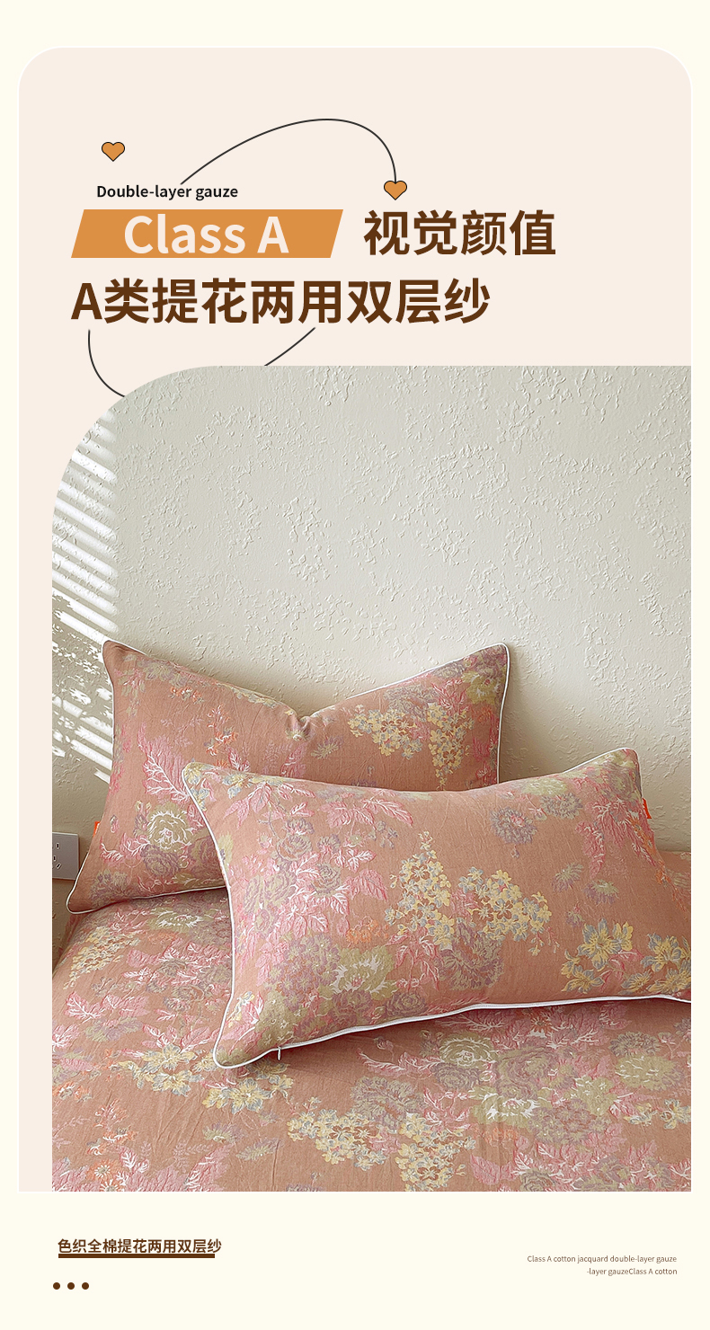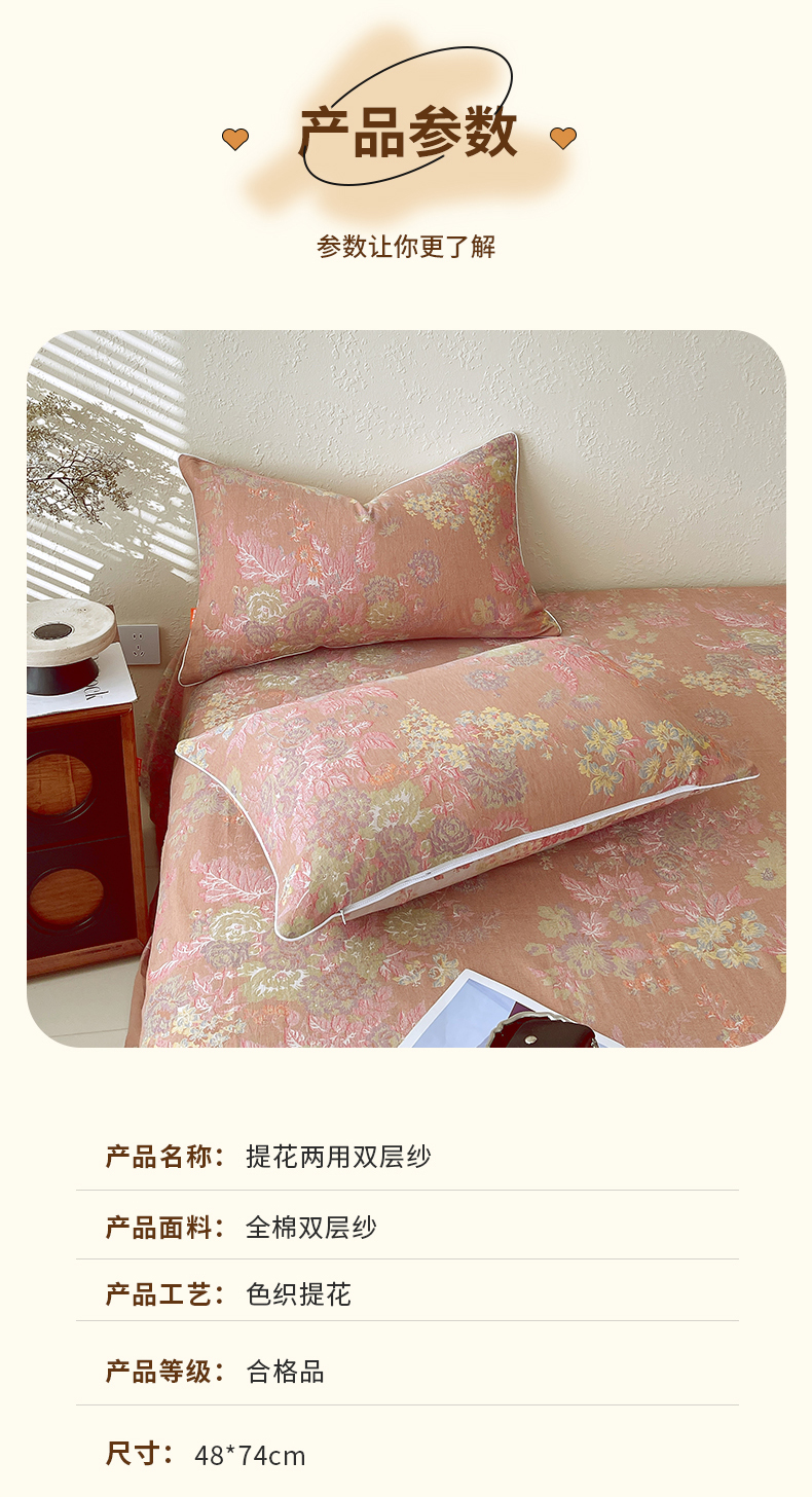 商品名称:春皖家纺 2026春夏新款(正反两用)A类提花双层纱单枕套 霞沫