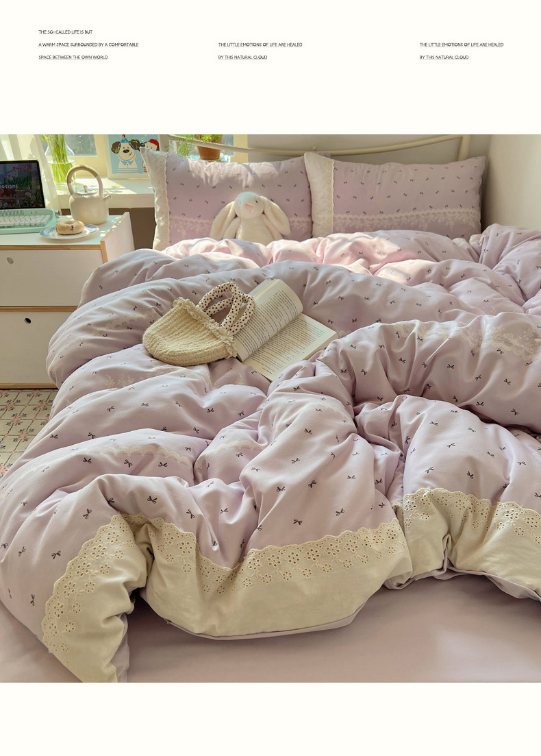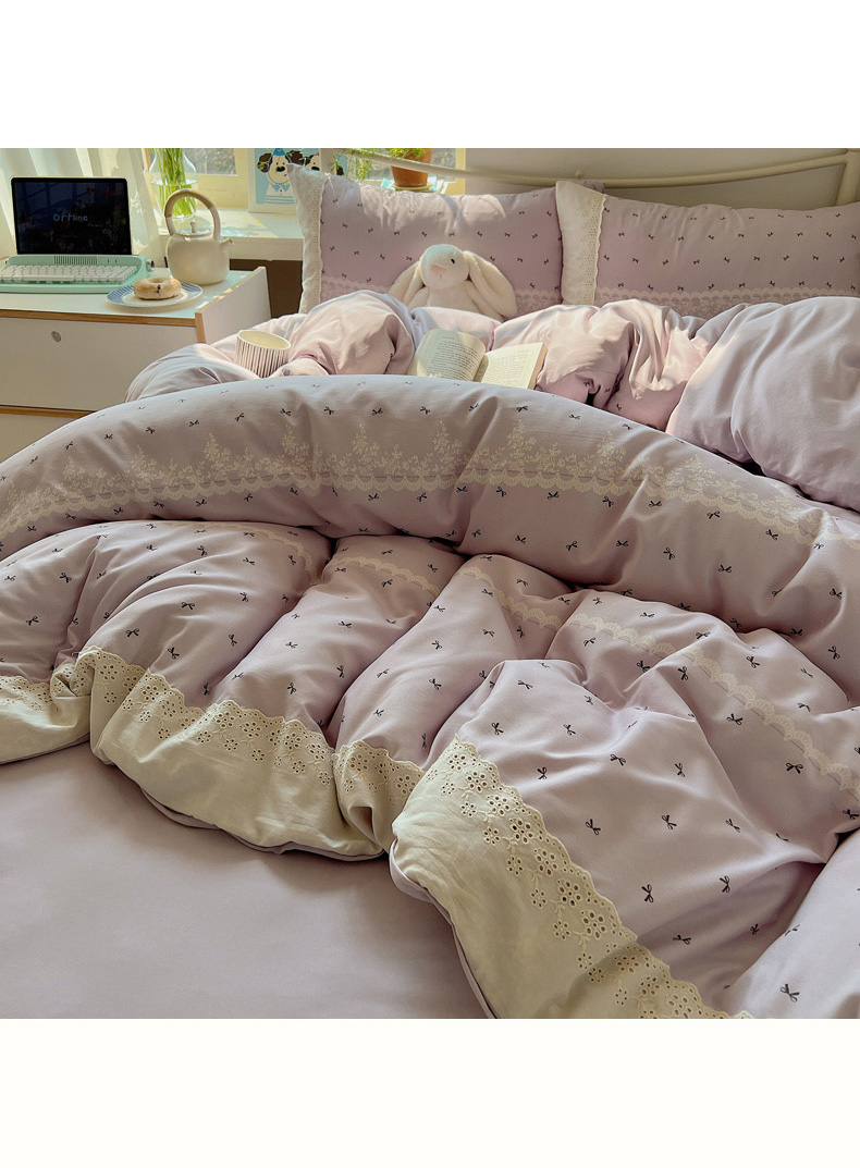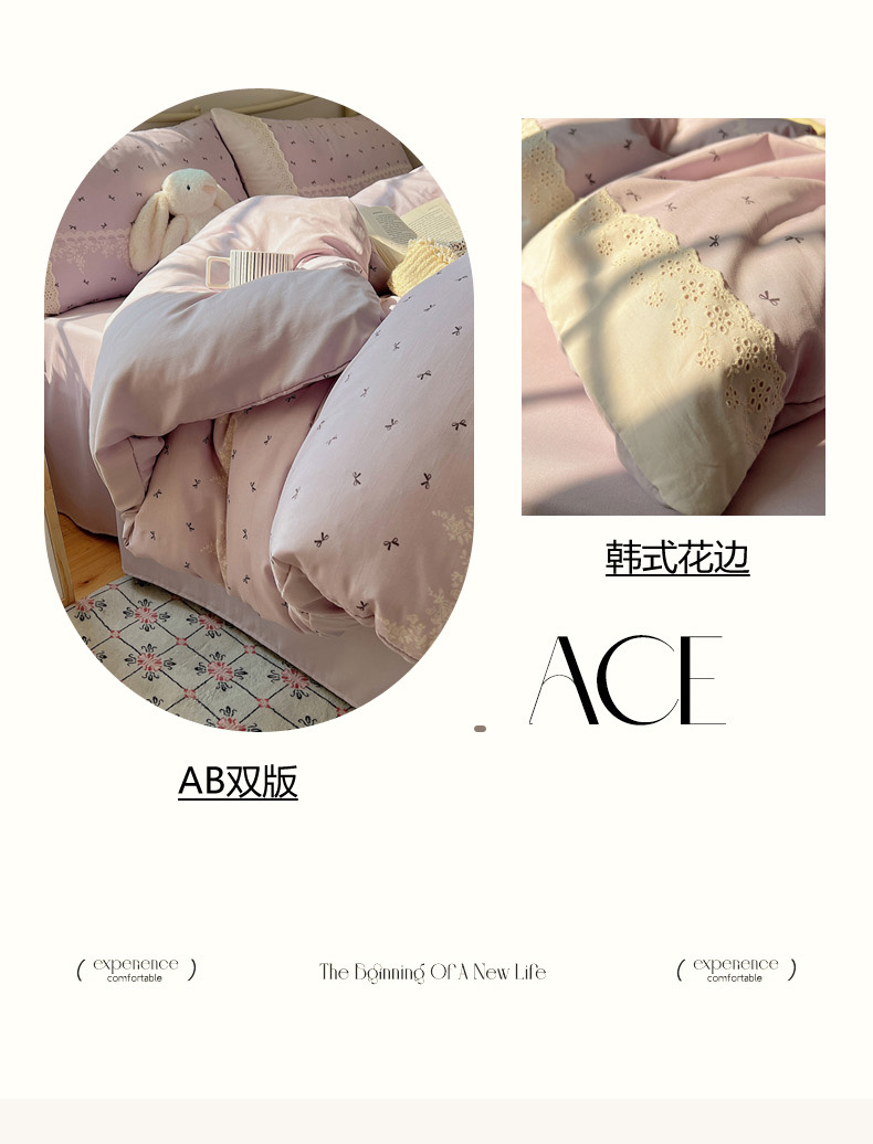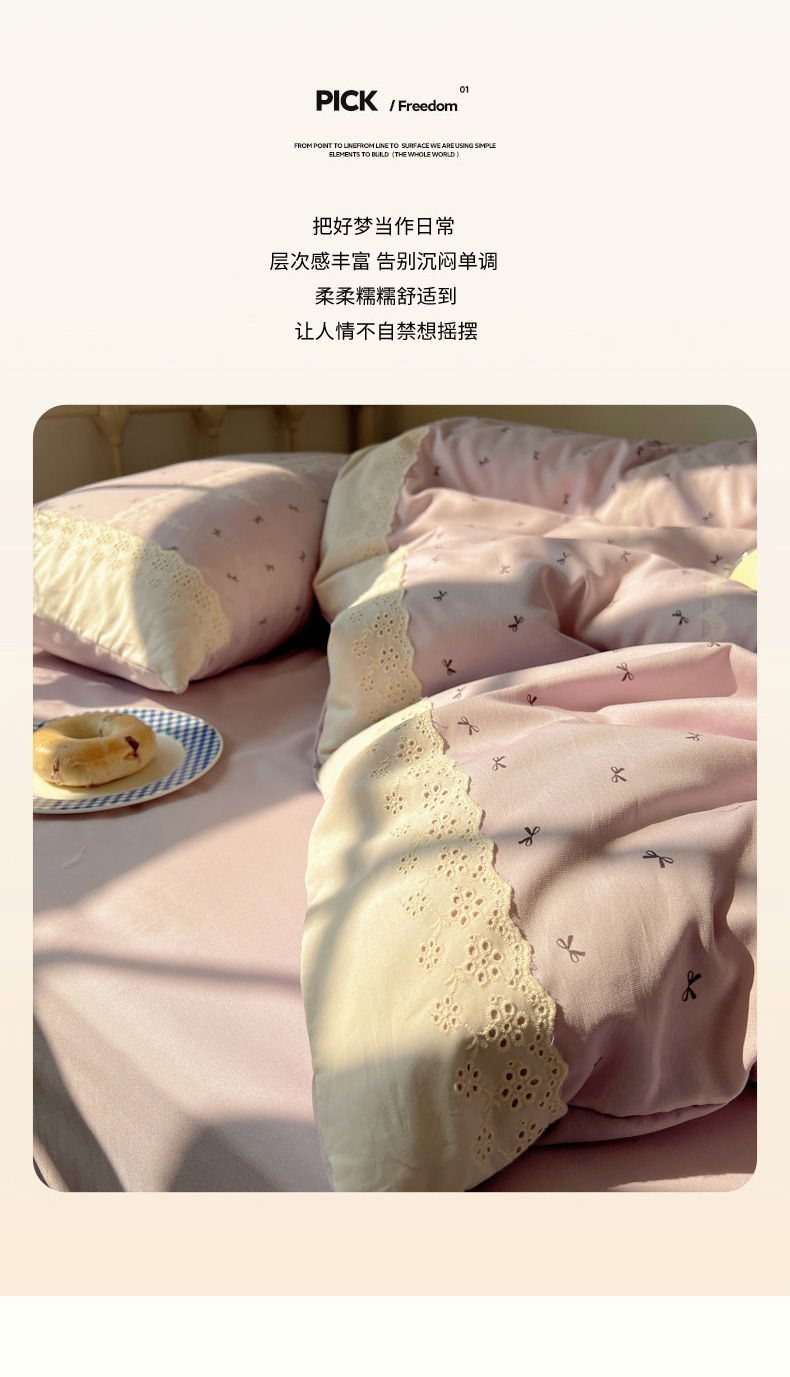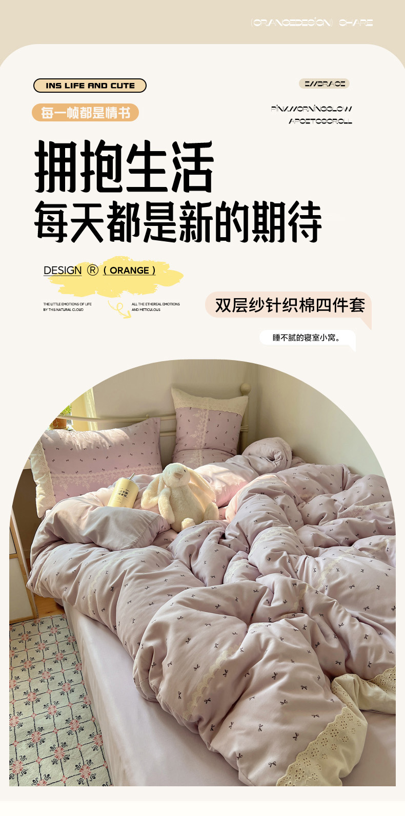 慕澄家纺 2026新款双层纱针织棉蕾丝花边四件套 蕾丝蝴蝶结