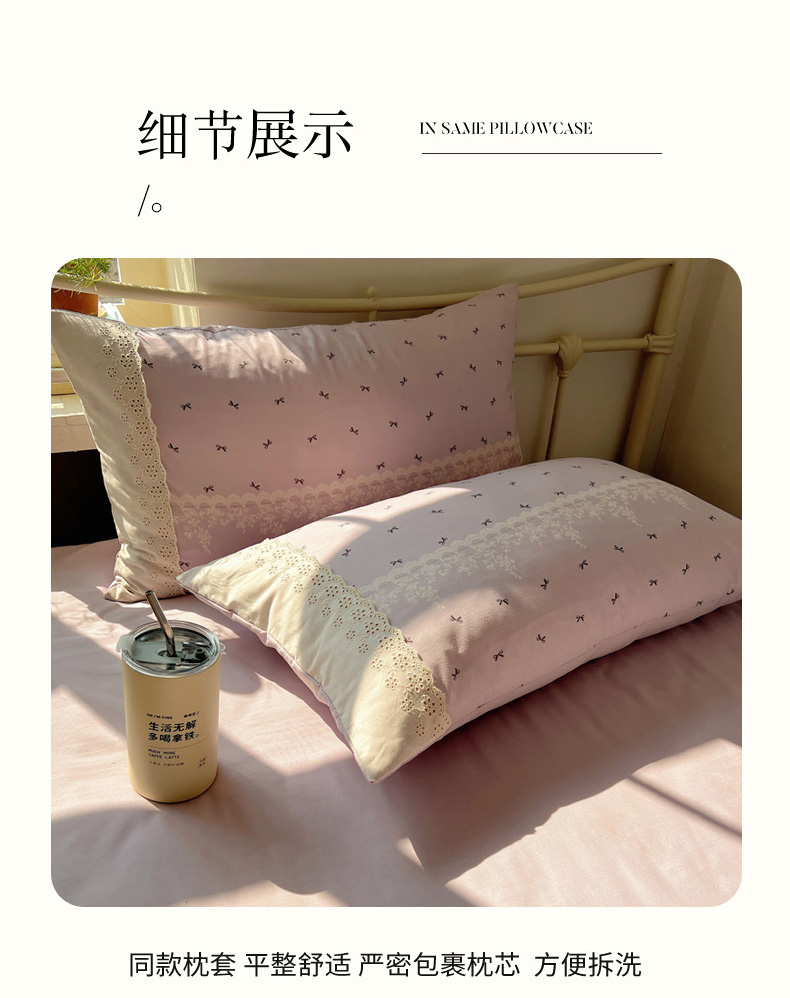 商品名称:慕澄家纺 2026新款双层纱针织棉蕾丝花边四件套 蕾丝蝴蝶结