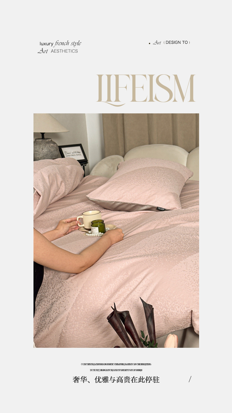 当前位置: 91家纺网 > 商品网购 > 床上用品 > 被套 > 富馨莱 2026新款100支长绒棉色织大提花四件套单品被套系列 爱庭-迷香粉