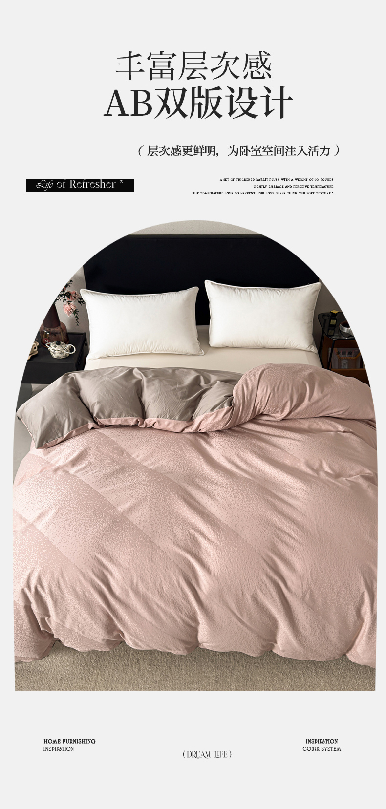 • 91家纺网 家纺一手货源 找家纺 富馨莱 2026新款100支长绒棉色织大提花四件套单品被套系列 爱庭-迷香粉