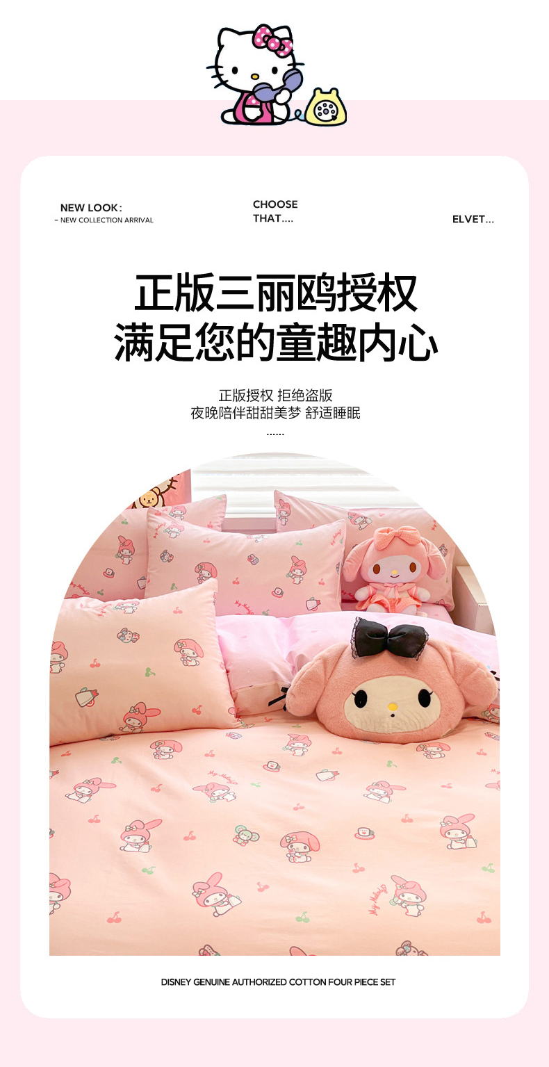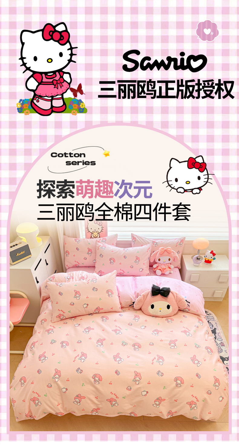 当前位置: 91家纺网 > 商品网购 > 床品套件 > 四件套 > 全棉普通四件套 > 暮思家居 2026新款正版授权三丽鸥全棉纯棉四件套系列-第二批 元气美乐蒂