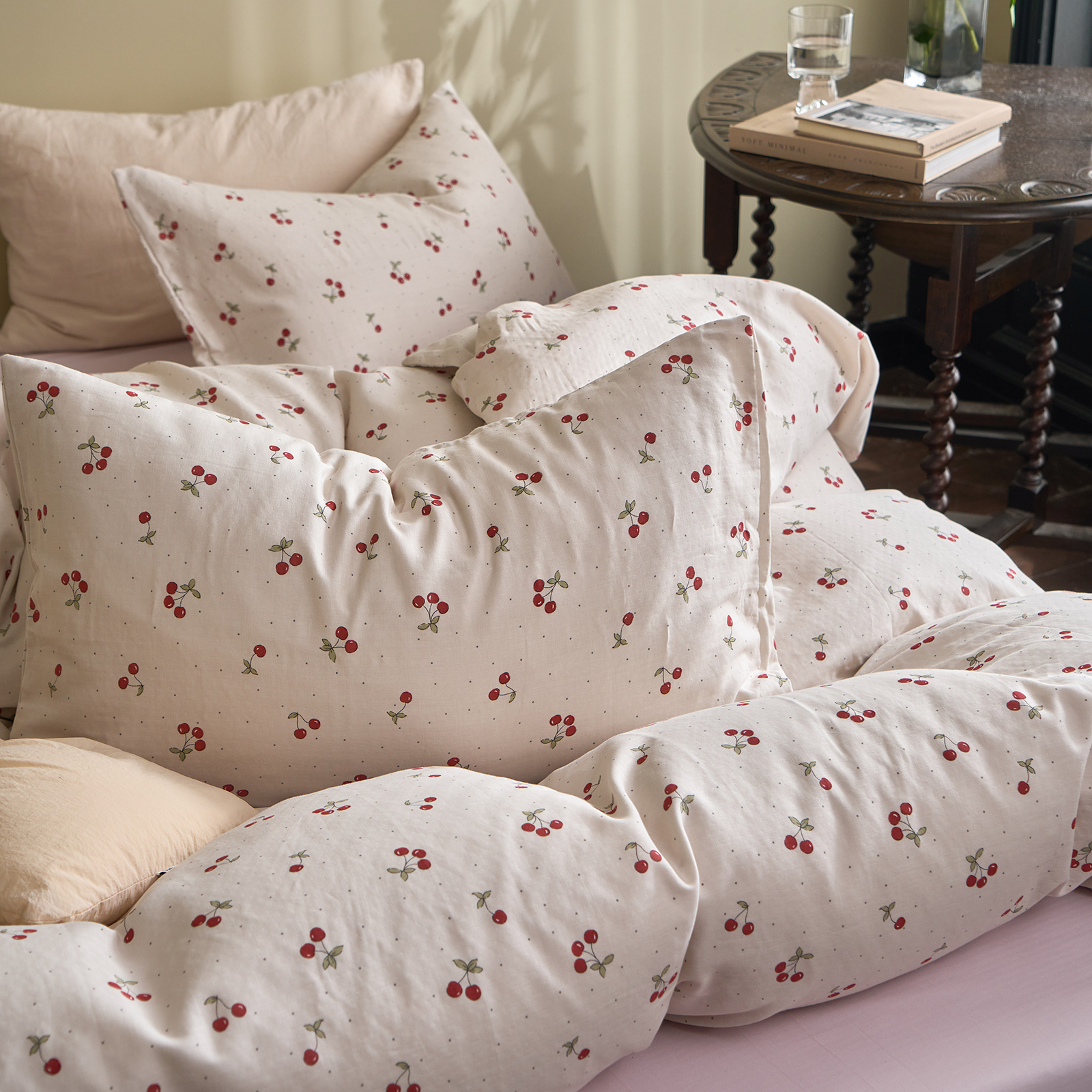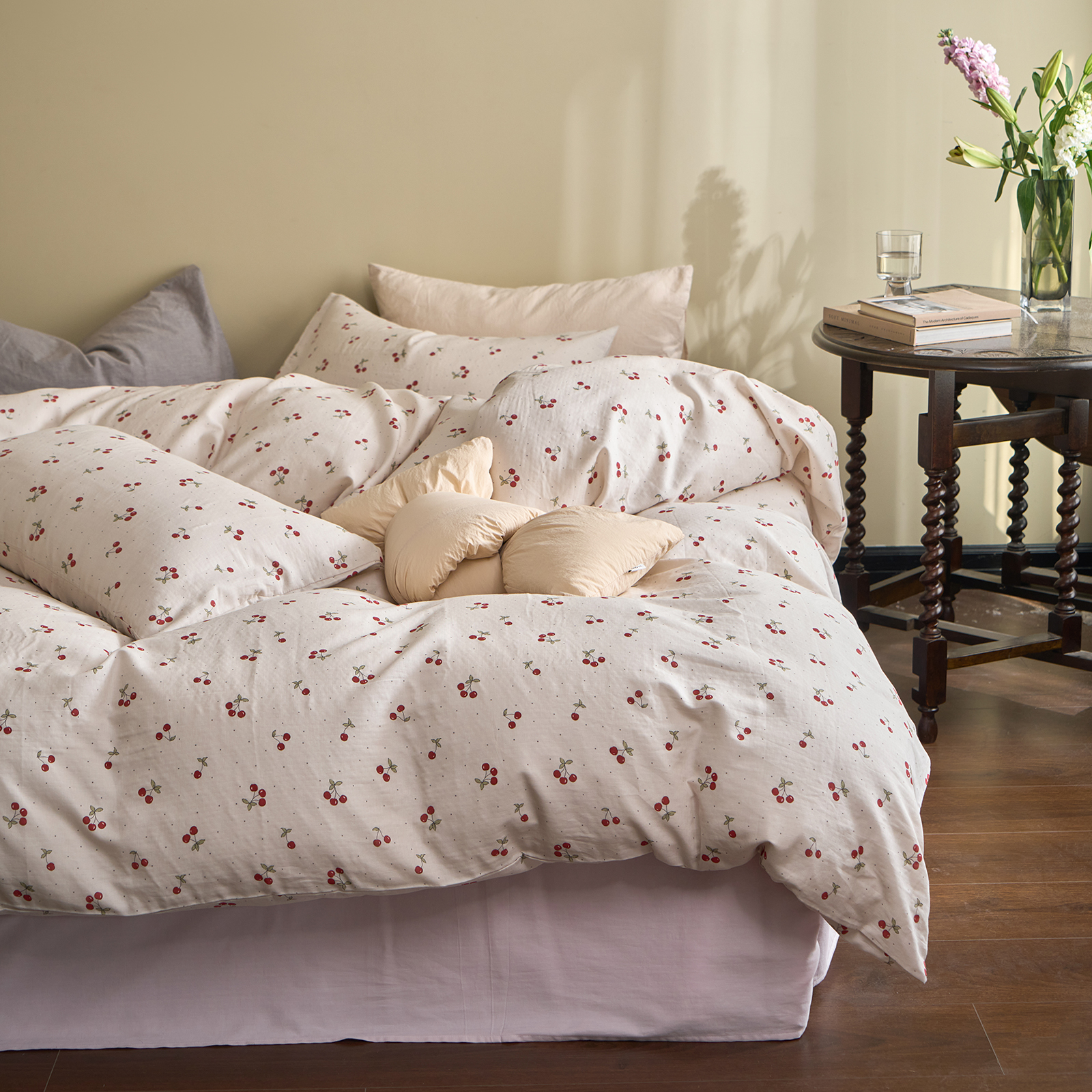 商品名称:洋铭区(原狠狠爱) 2026春季新款简约全棉 无边双层纱 四件套系列 红果果