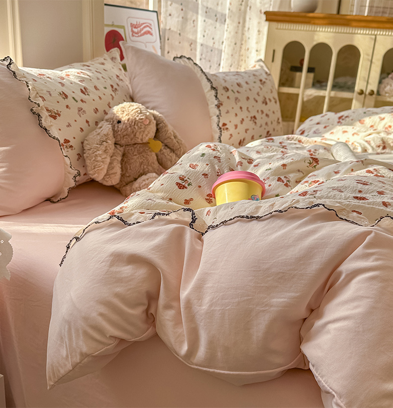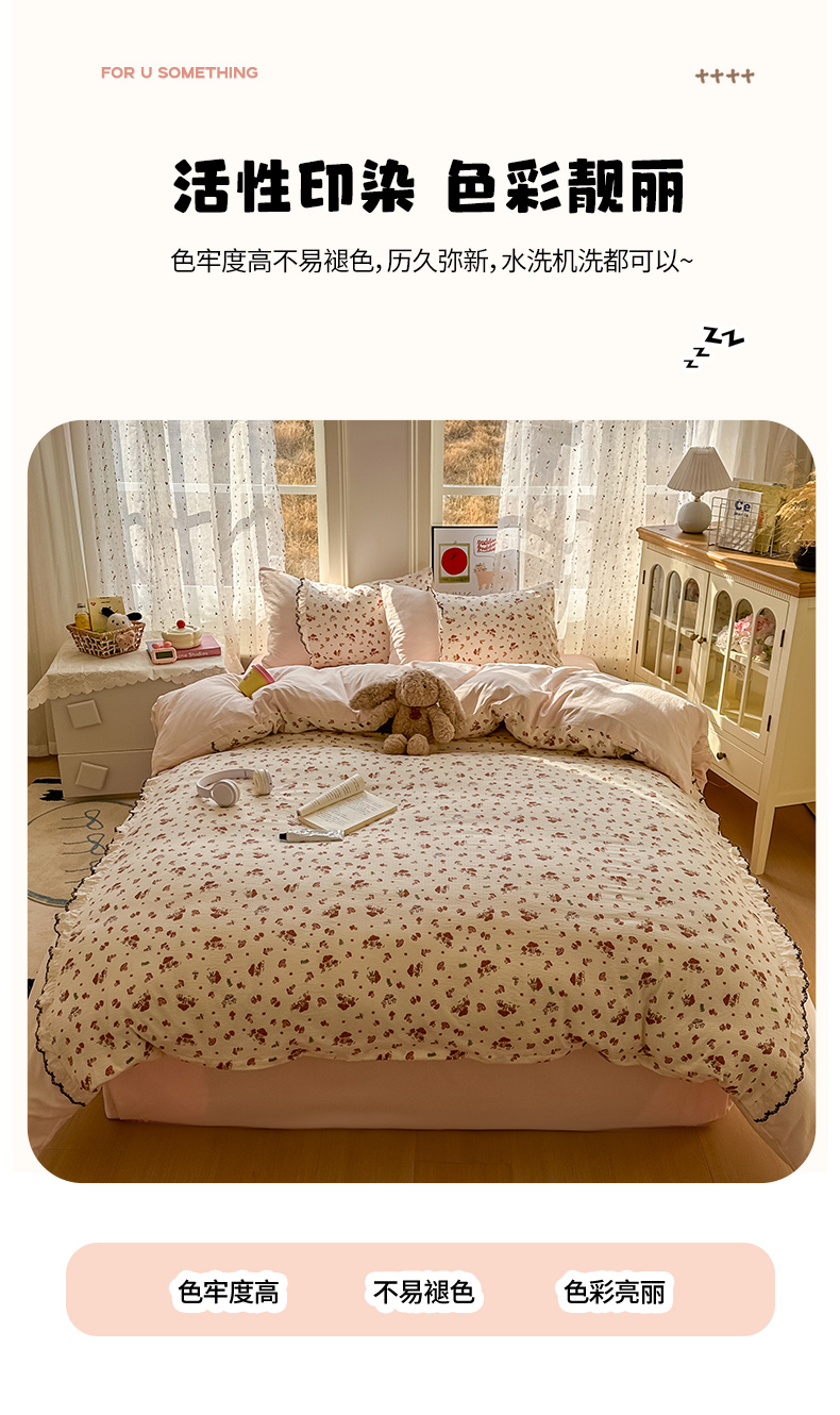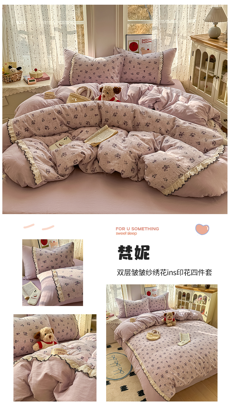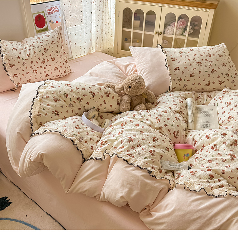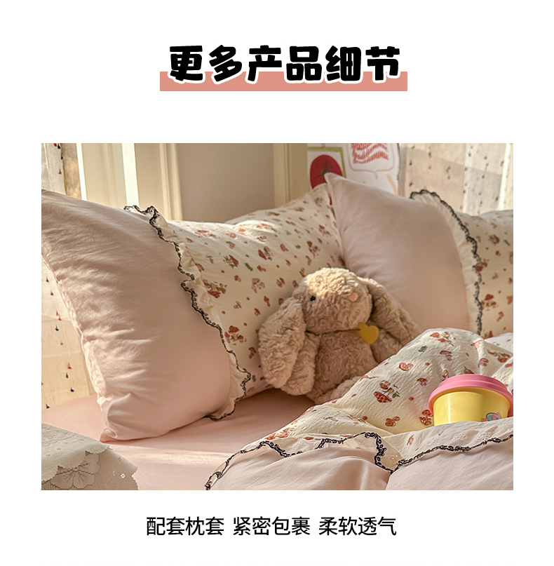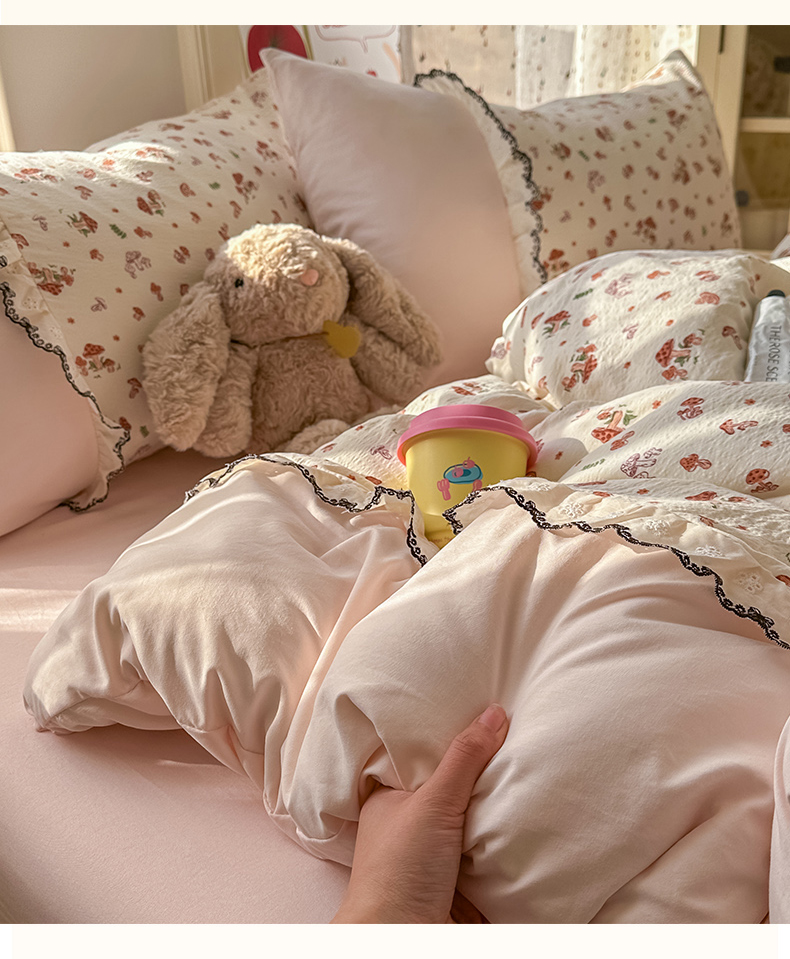 当前位置: 91家纺网 > 商品网购 > 床品套件 > 四件套 > 水洗棉四件套 > 贝凯瑞 2026新款小花边水洗棉绣花ins小清新床单床裙床笠四件套 蘑菇园