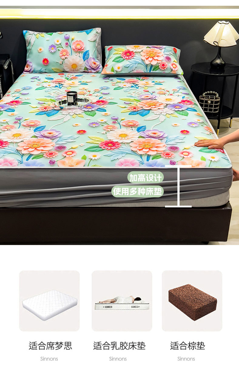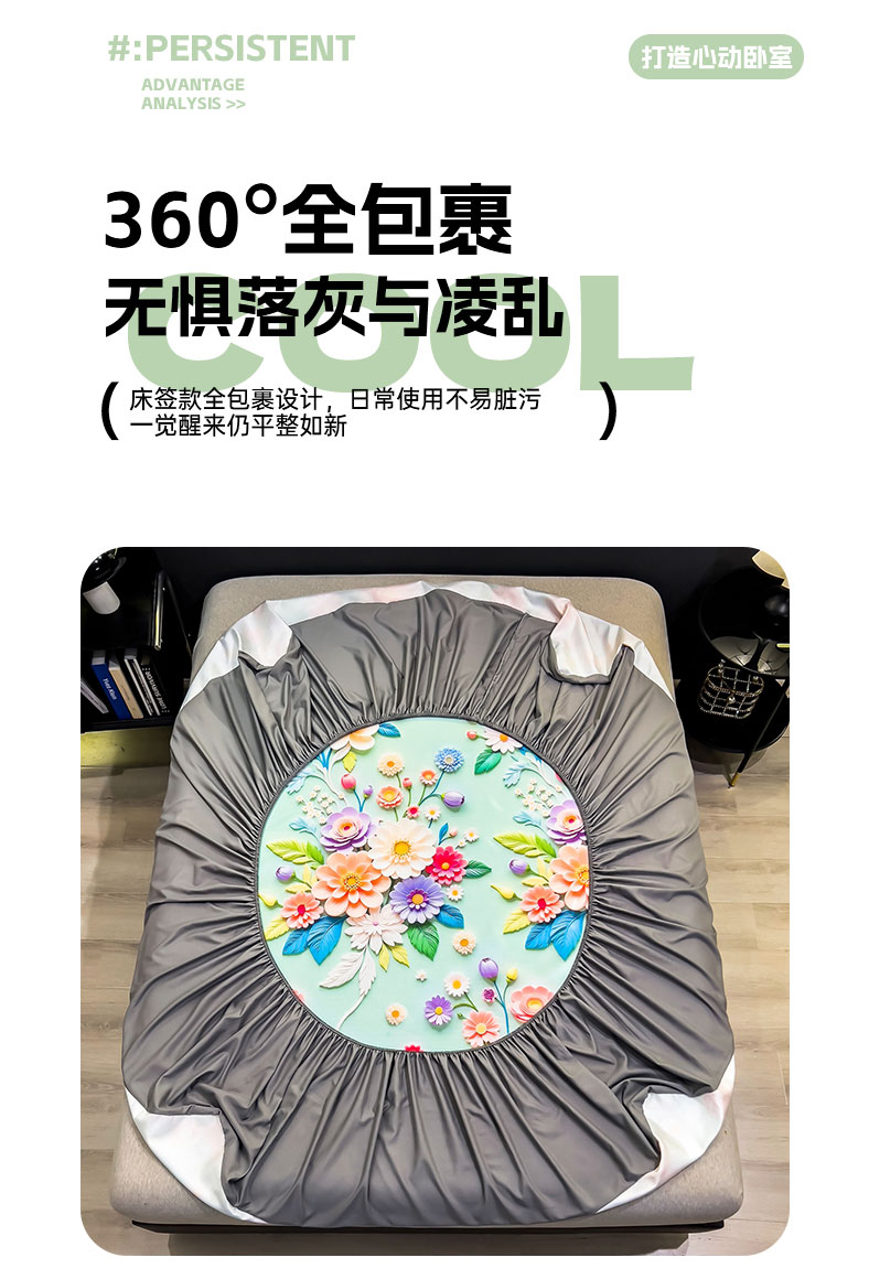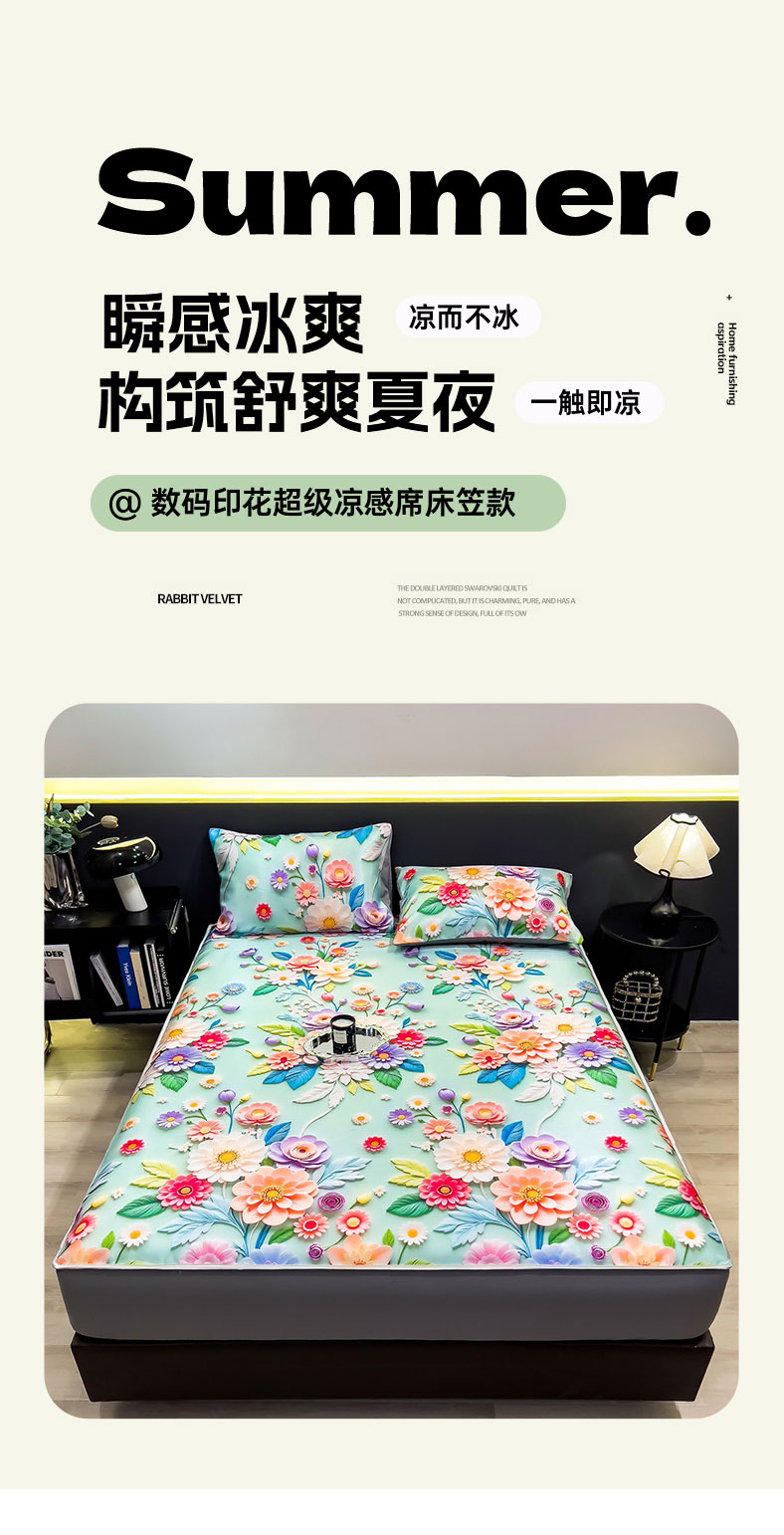 许林家纺 2026新款数码印花超级凉感席床笠款 芸白