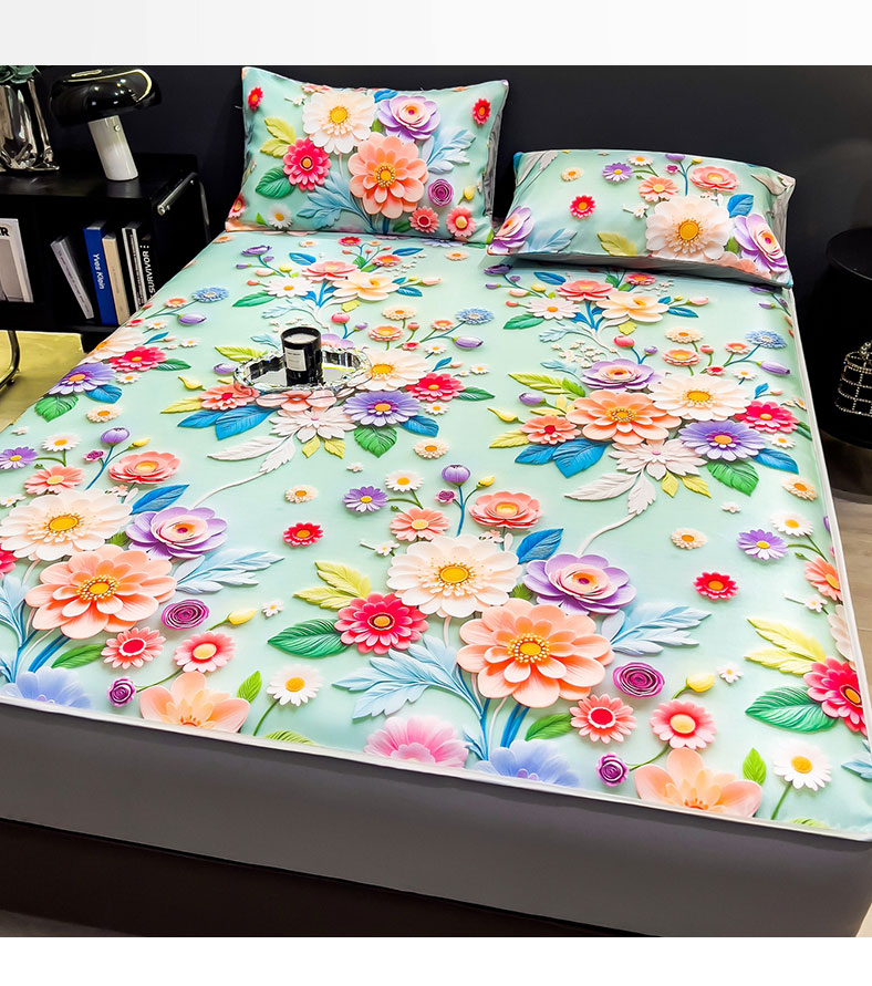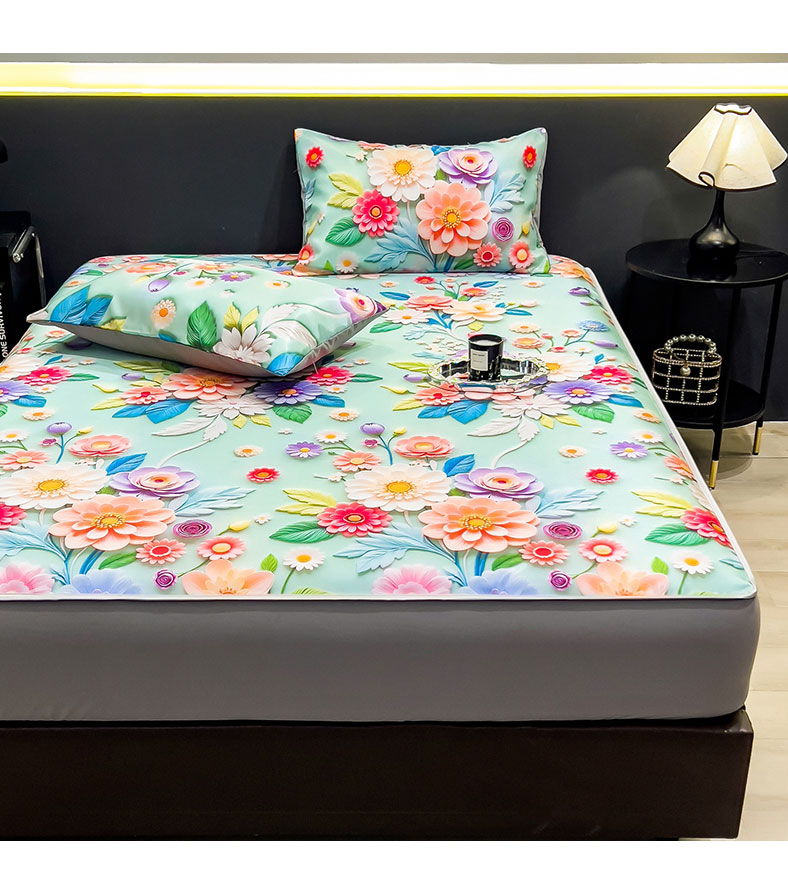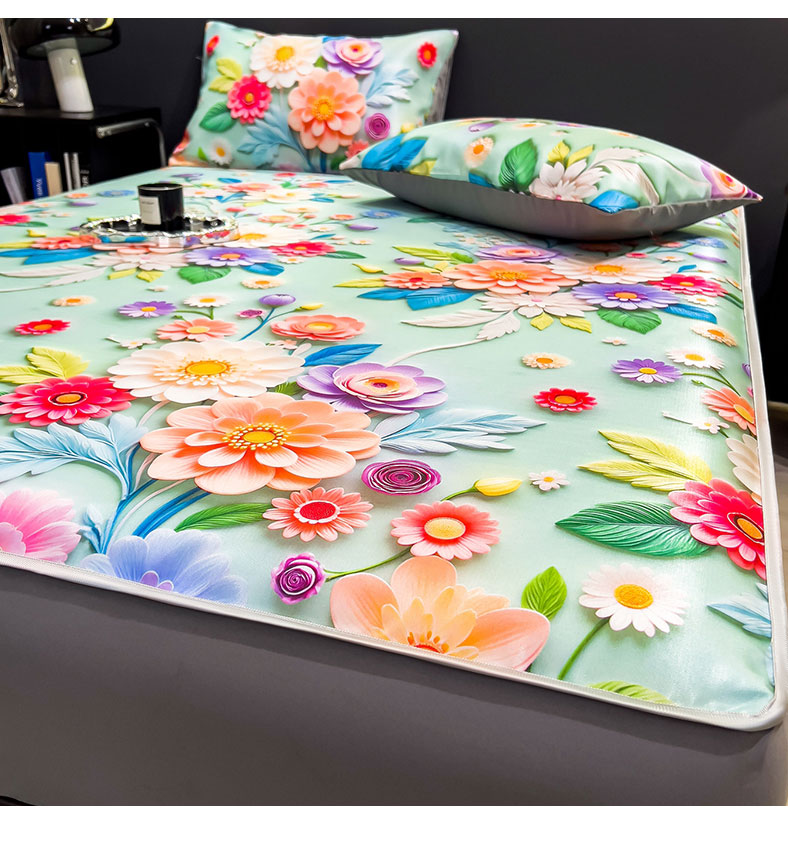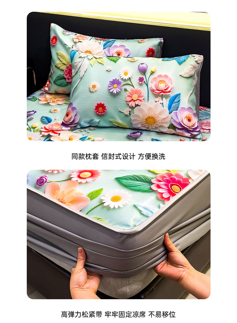 许林 2026新款冰丝凉席床单款凉席三件套 朵真,朵真