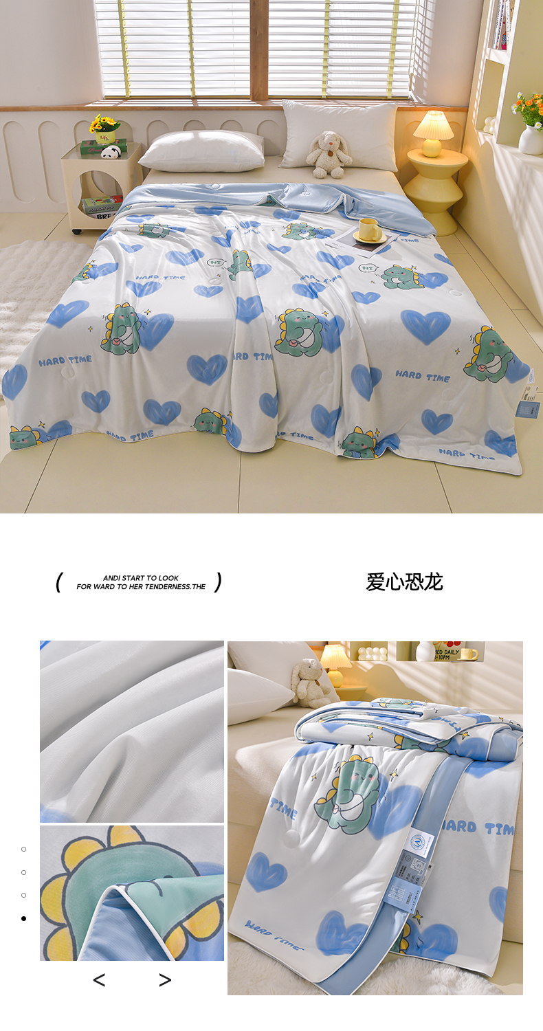 叠派家纺 2026新款A类氨纶凉感丝夏被印花空调被西瓜夏凉被直播 爱心恐龙