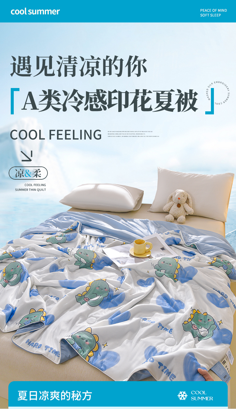 (总)叠派家纺 2026新款A类氨纶凉感丝夏被印花空调被西瓜夏凉被直播,爱心恐龙,格子蝴蝶结,花丛兔,花季小狗,蓝楹碎影,浪漫花语,浅豆沙,柔紫,天青,雾蓝,云灰