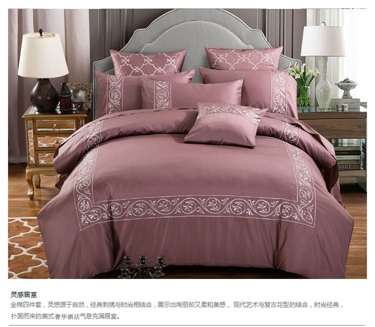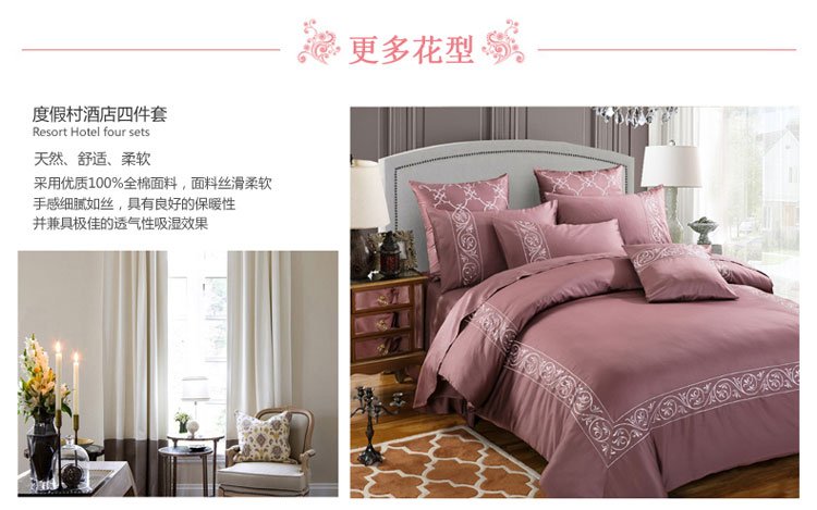 (总)兴美佳家纺 欧式60s贡缎长绒棉刺绣四件套,幽兰古调-蓝,幽兰古调-紫