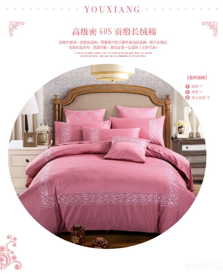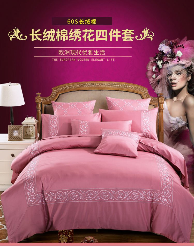 兴美佳家纺 欧式60s贡缎长绒棉刺绣四件套