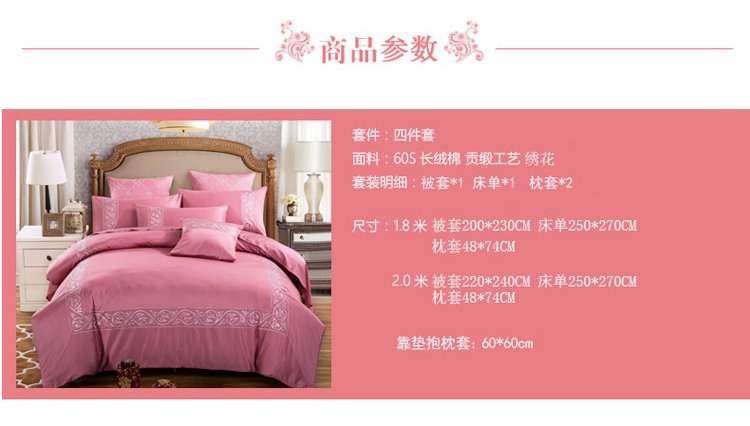 商品名称:兴美佳家纺 欧式60s贡缎长绒棉刺绣四件套