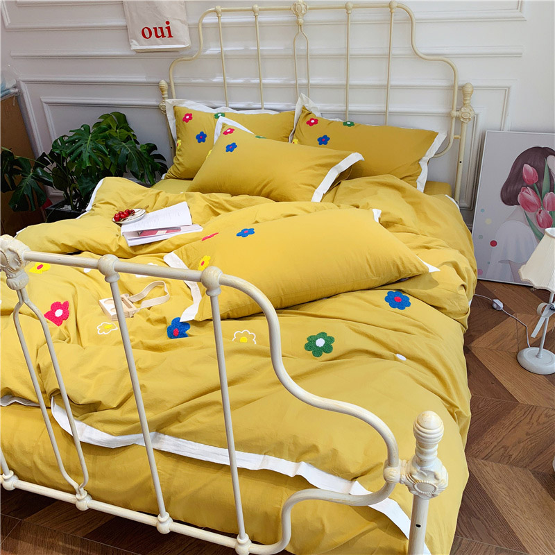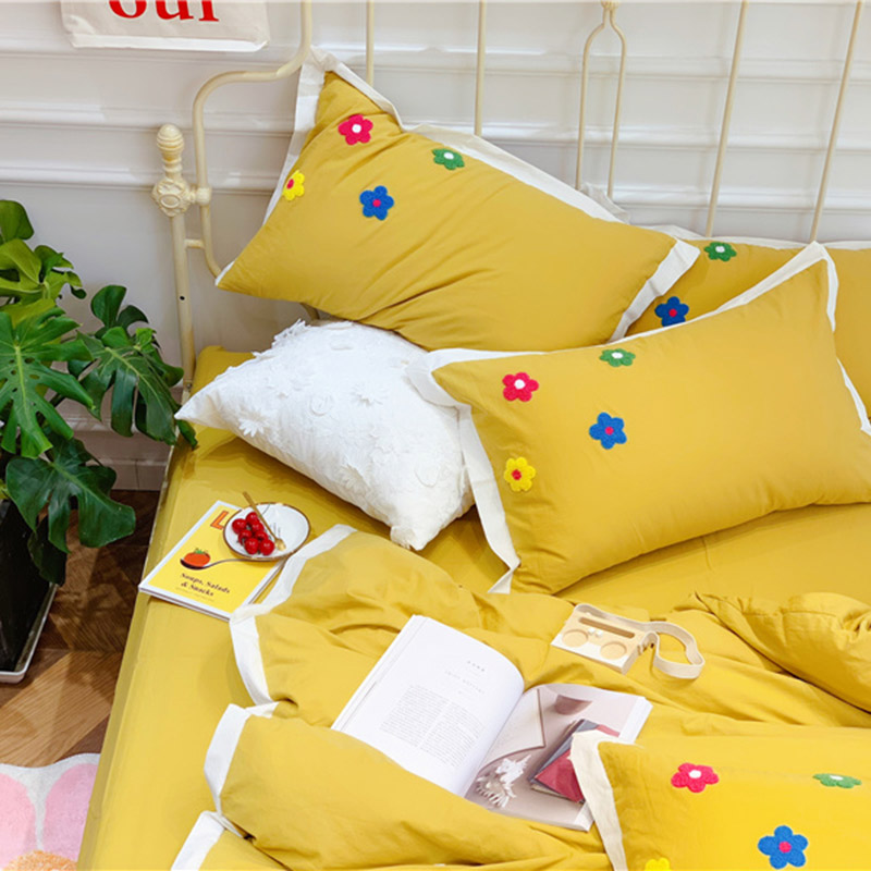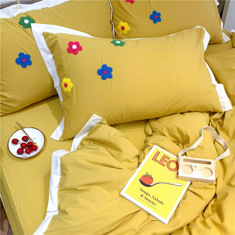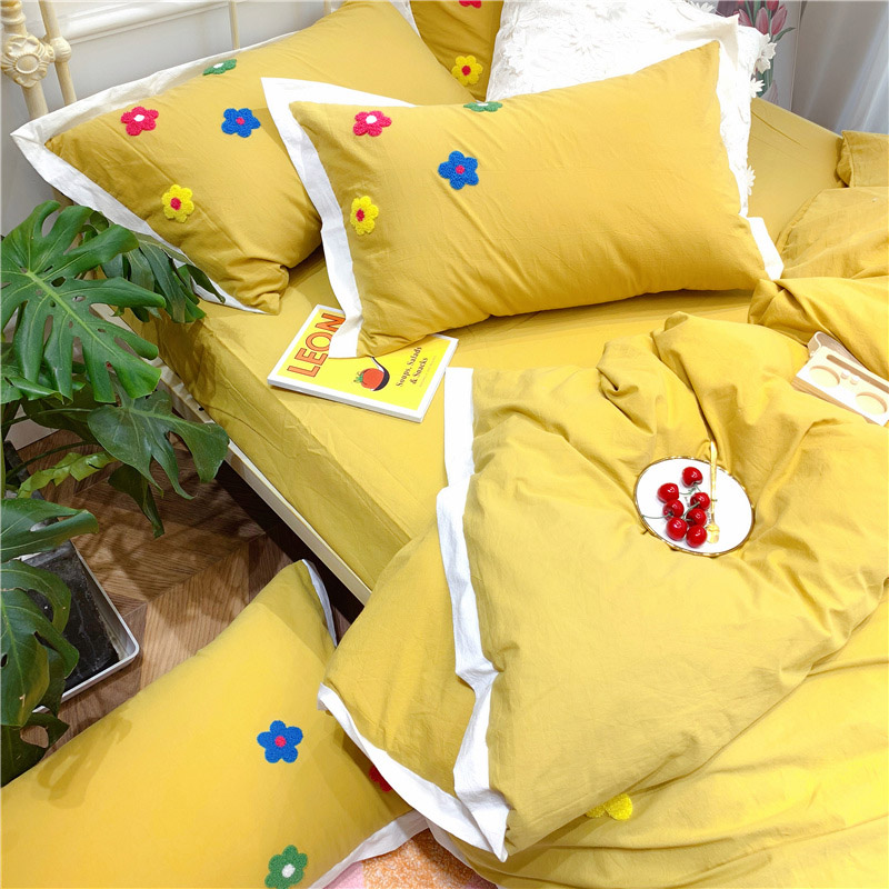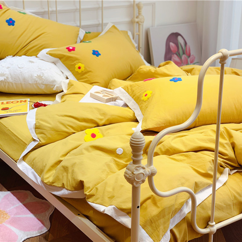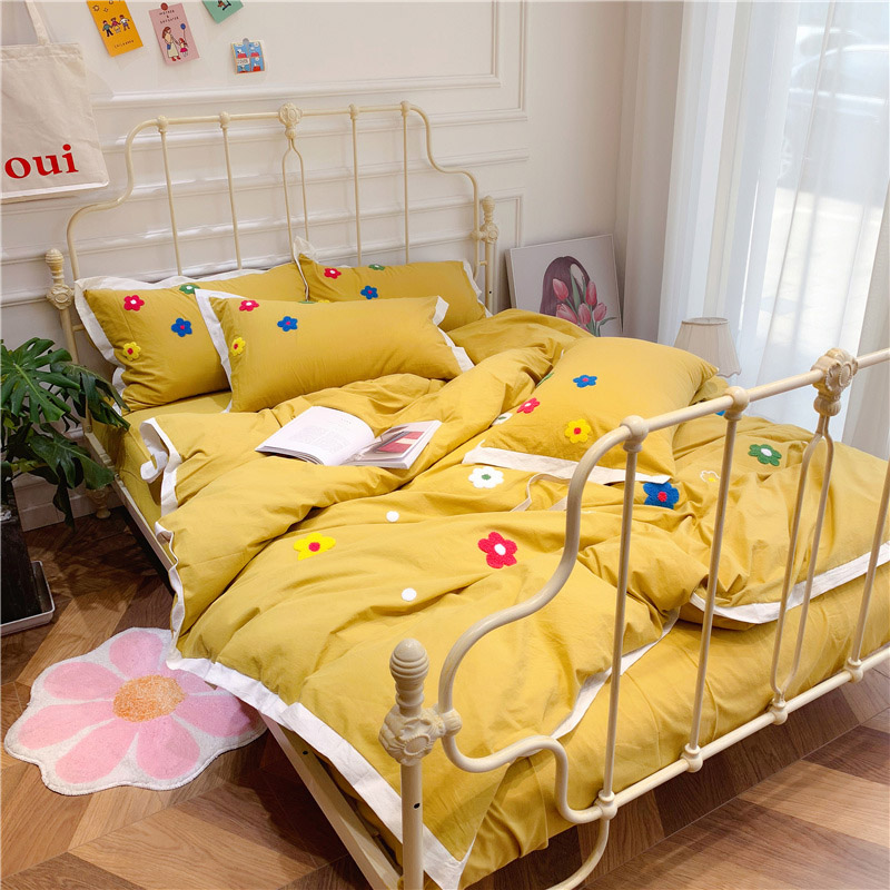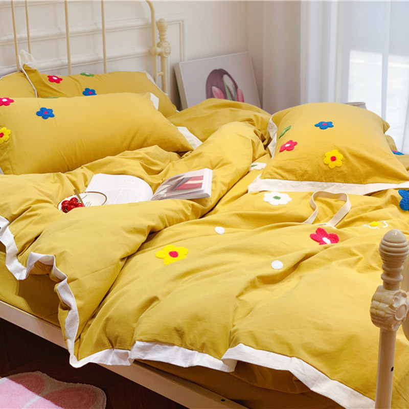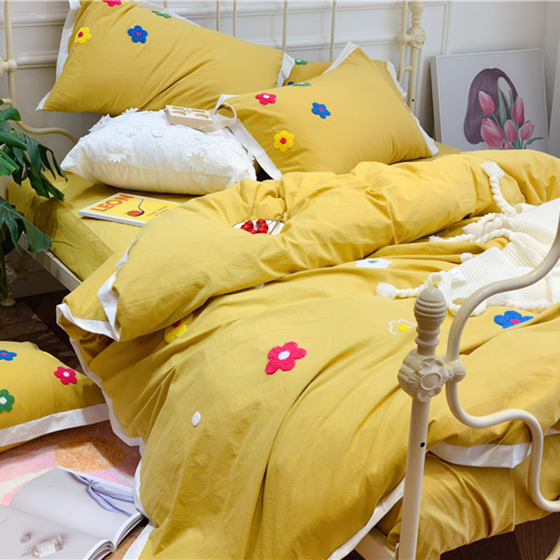 商品名称:润缦 新款加厚全棉水洗棉四件套 泫雅风-姜黄