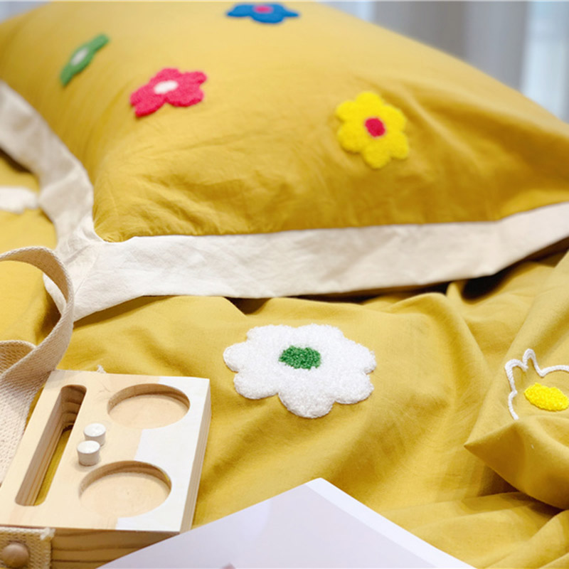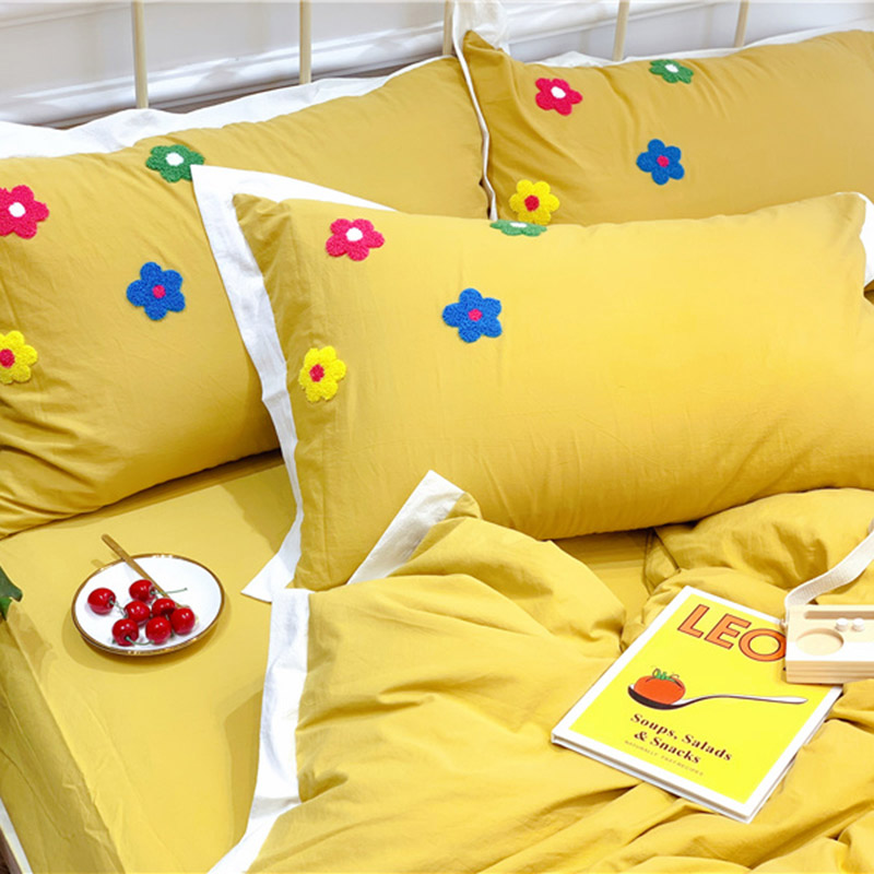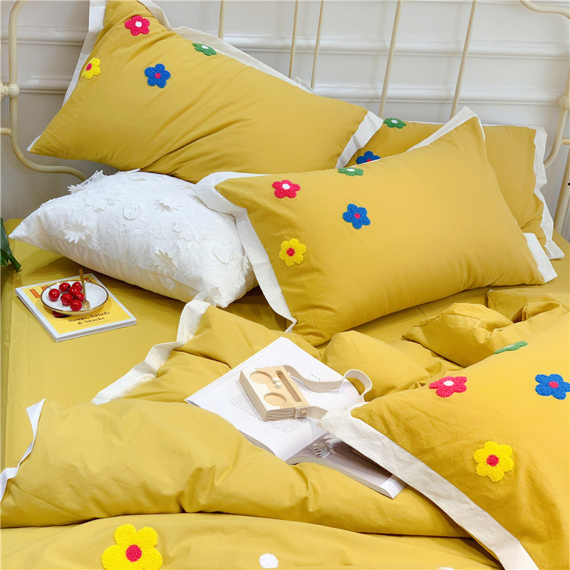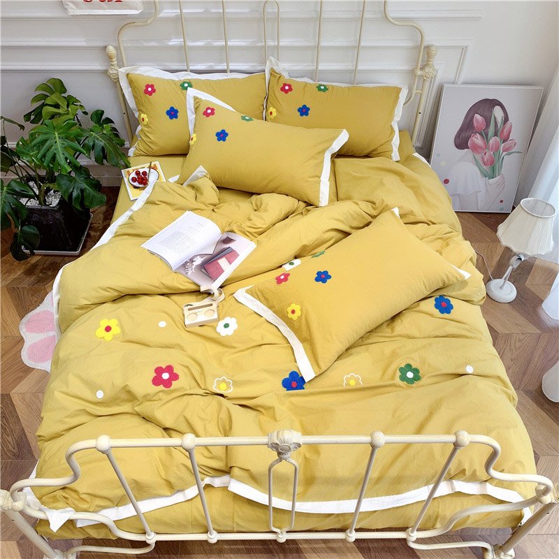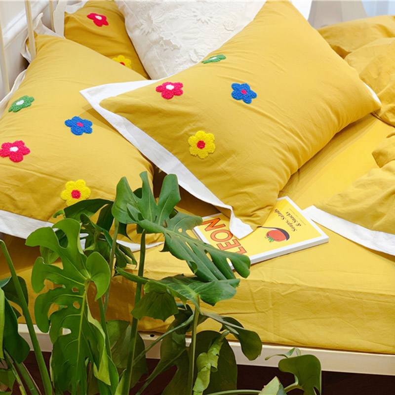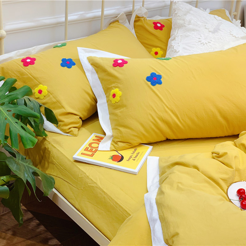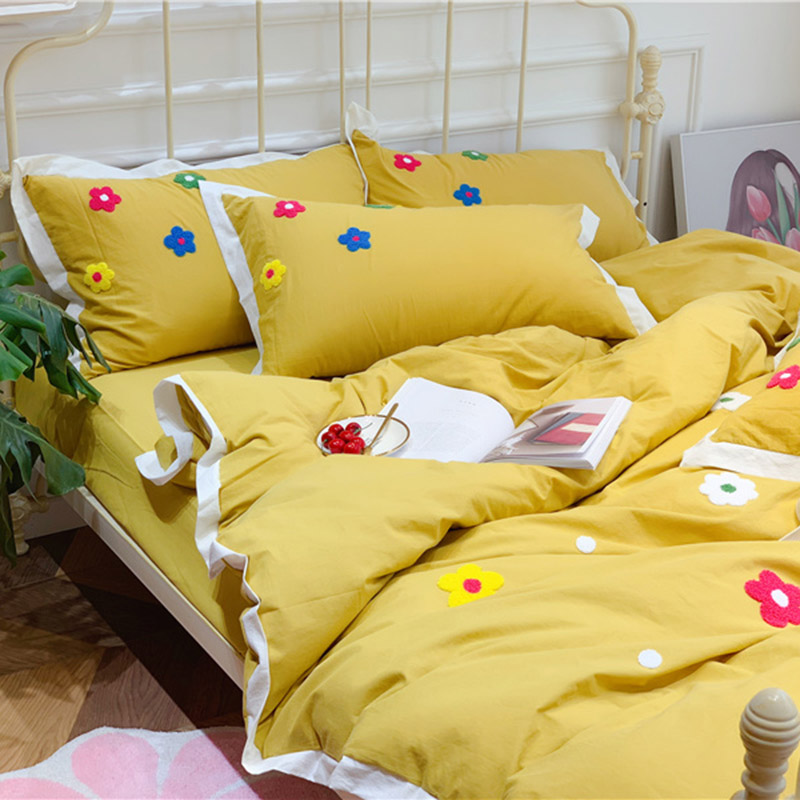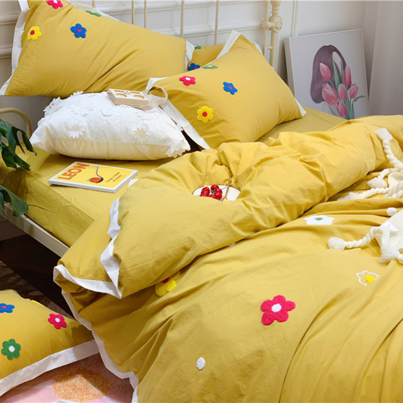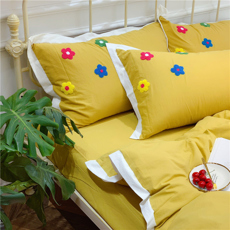 商品名称:润缦 新款加厚全棉水洗棉四件套 泫雅风-姜黄