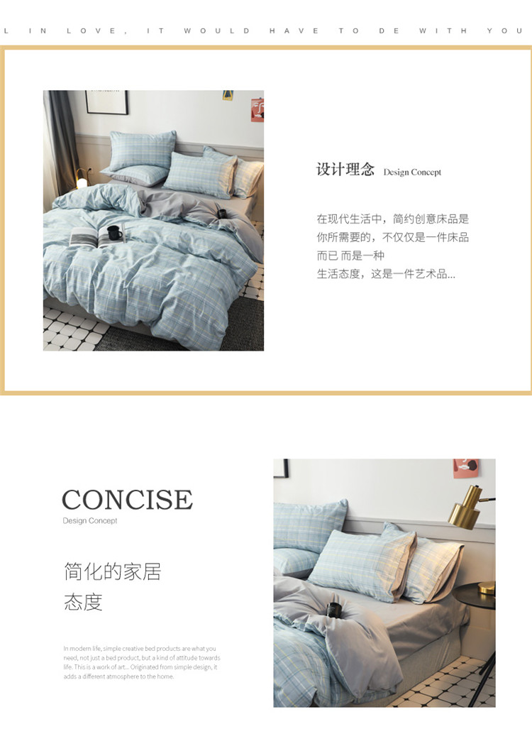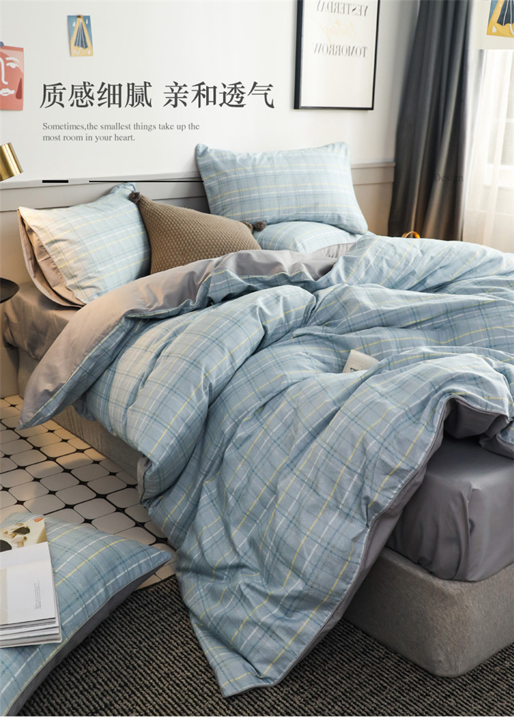 澳萝拉 2020新款13372全棉滚边格子款四件套 绅士格
