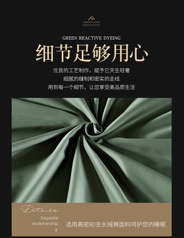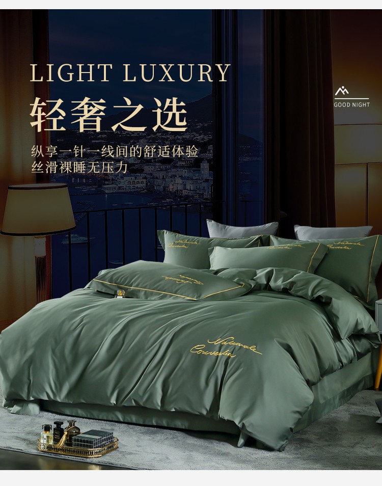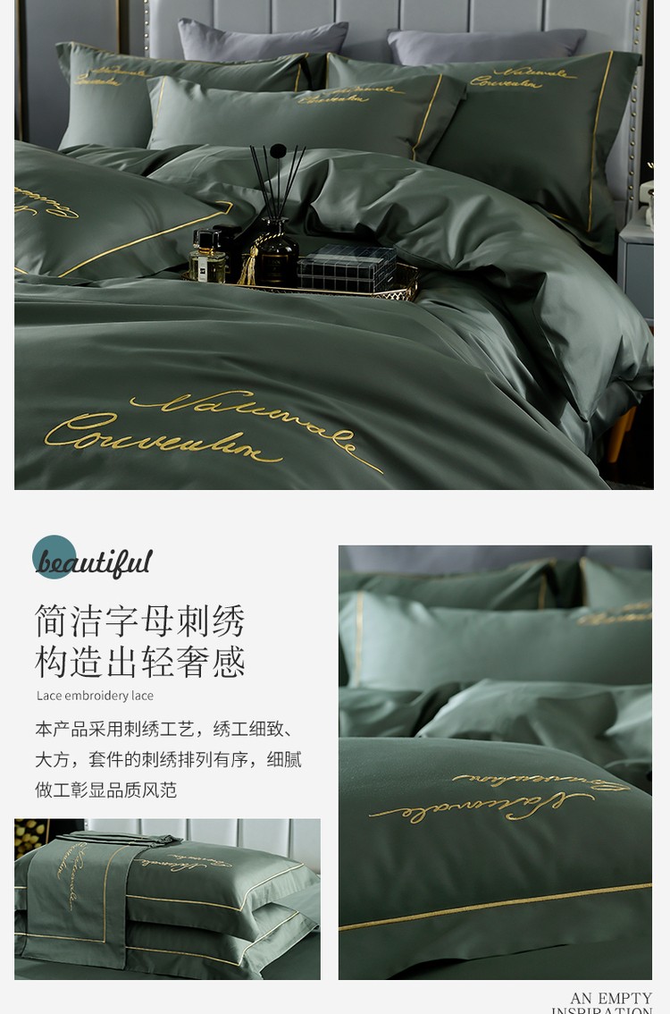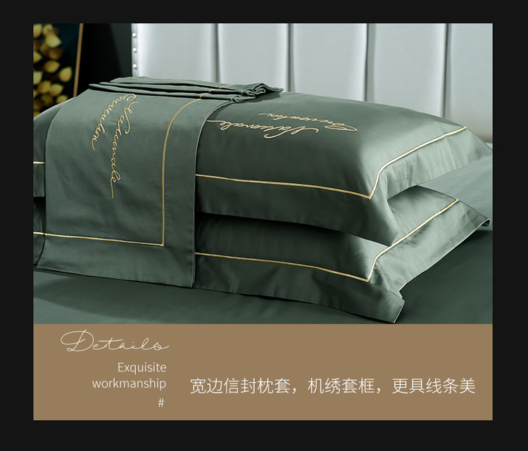柔觉家纺 天丝刺绣贡缎提花全棉四件套,柔梦-抹茶绿