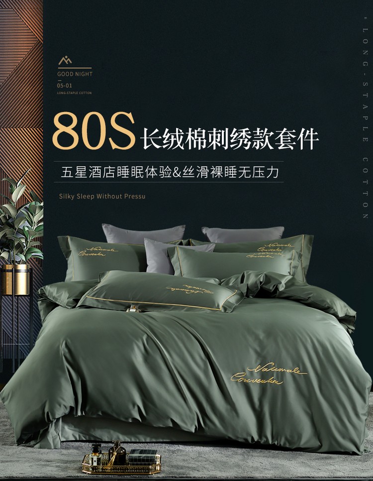 80支埃及长绒棉时尚绣四件套全棉四件套