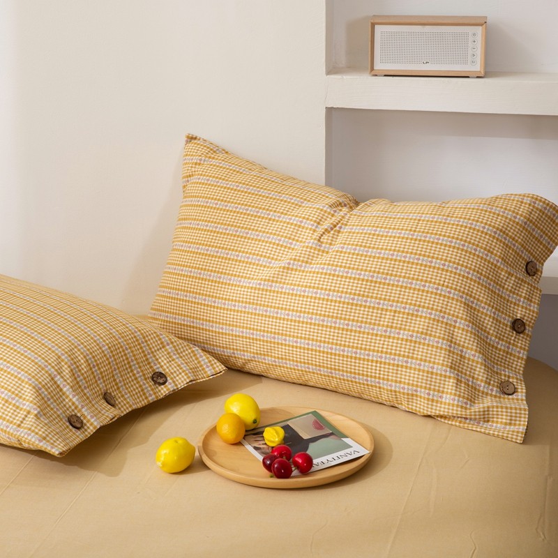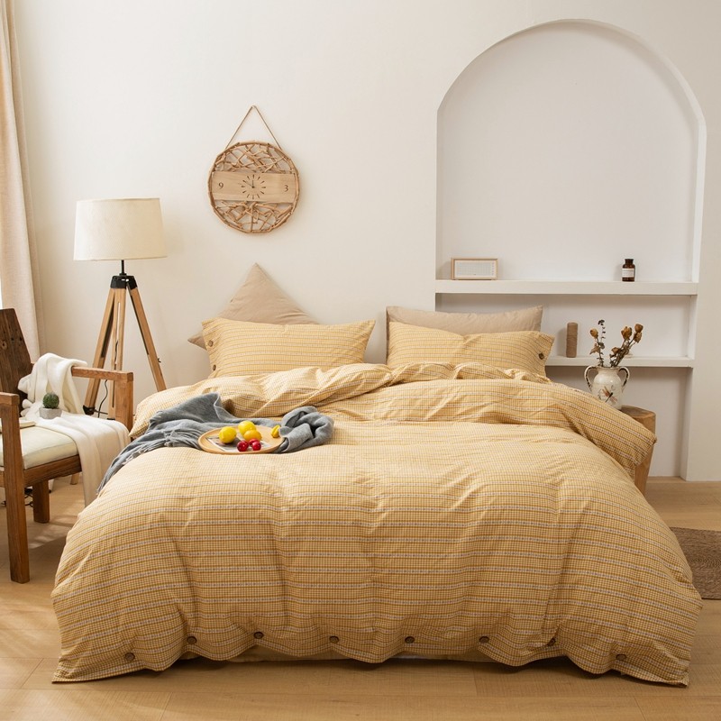 尚品本色 2022新款全棉色织水洗棉提花纽扣款四件套纯棉 洛洛可-黄