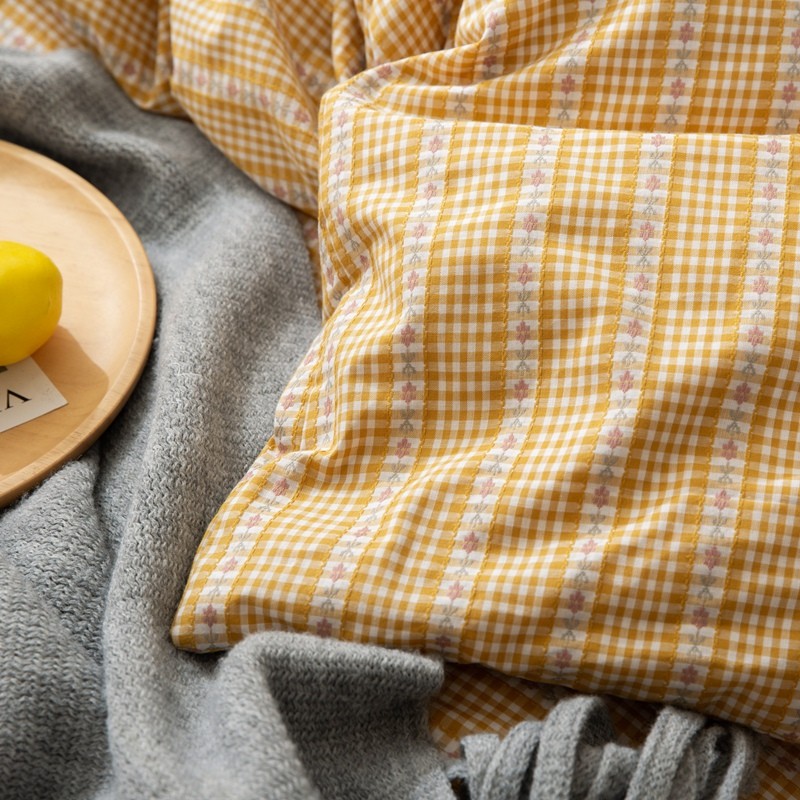 (总)尚品本色 2025新款全棉色织水洗棉格子绣花四件套,粉密格,灰密格,浅蓝密格
