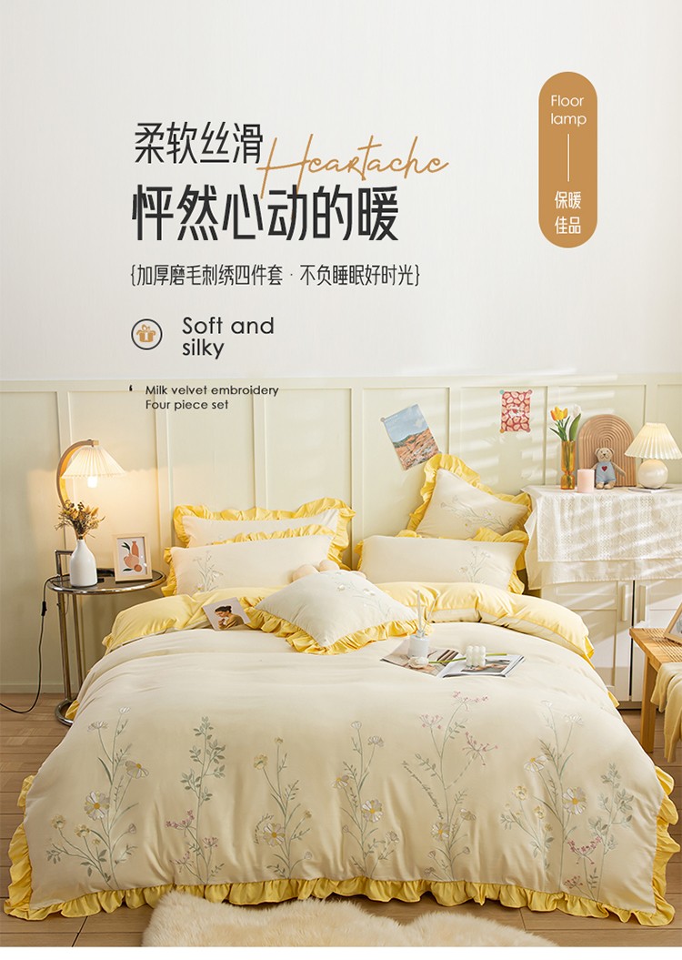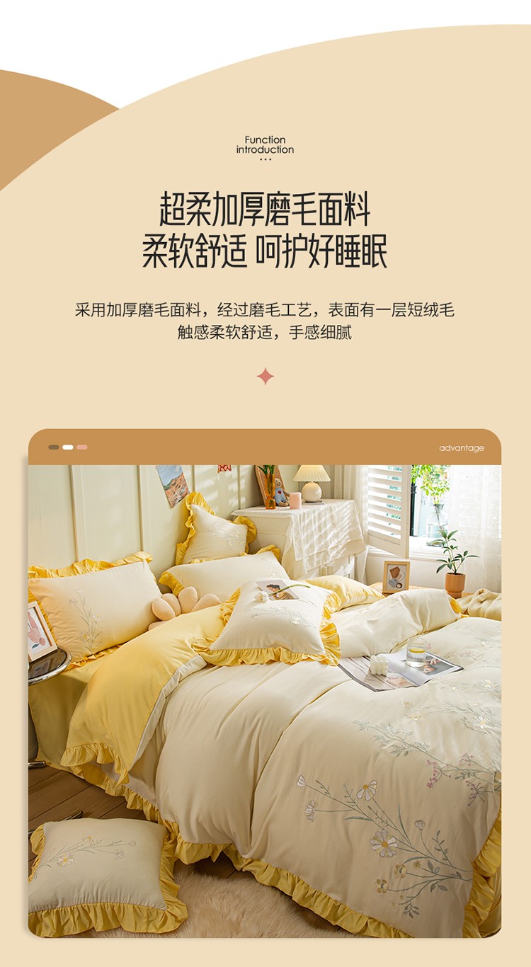 (总)涵宸家纺 2025新款全棉磨毛刺绣四件套系列-普莉,普莉-粉,普莉-绿,普莉-奶白