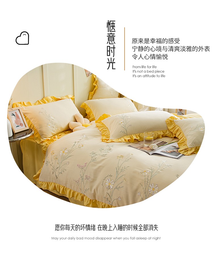 商品名称:涵宸 2022水洗氧棉刺绣四件套 花仙子— 米黄