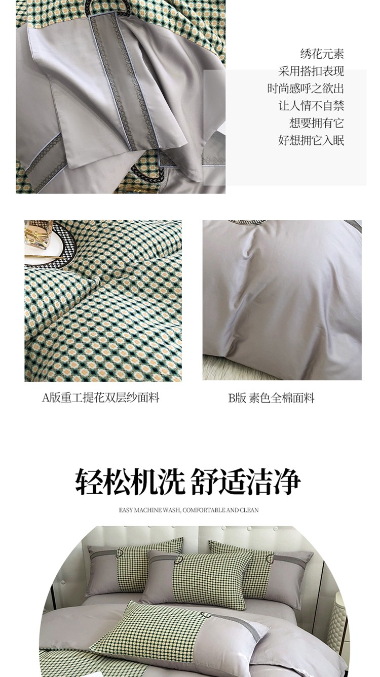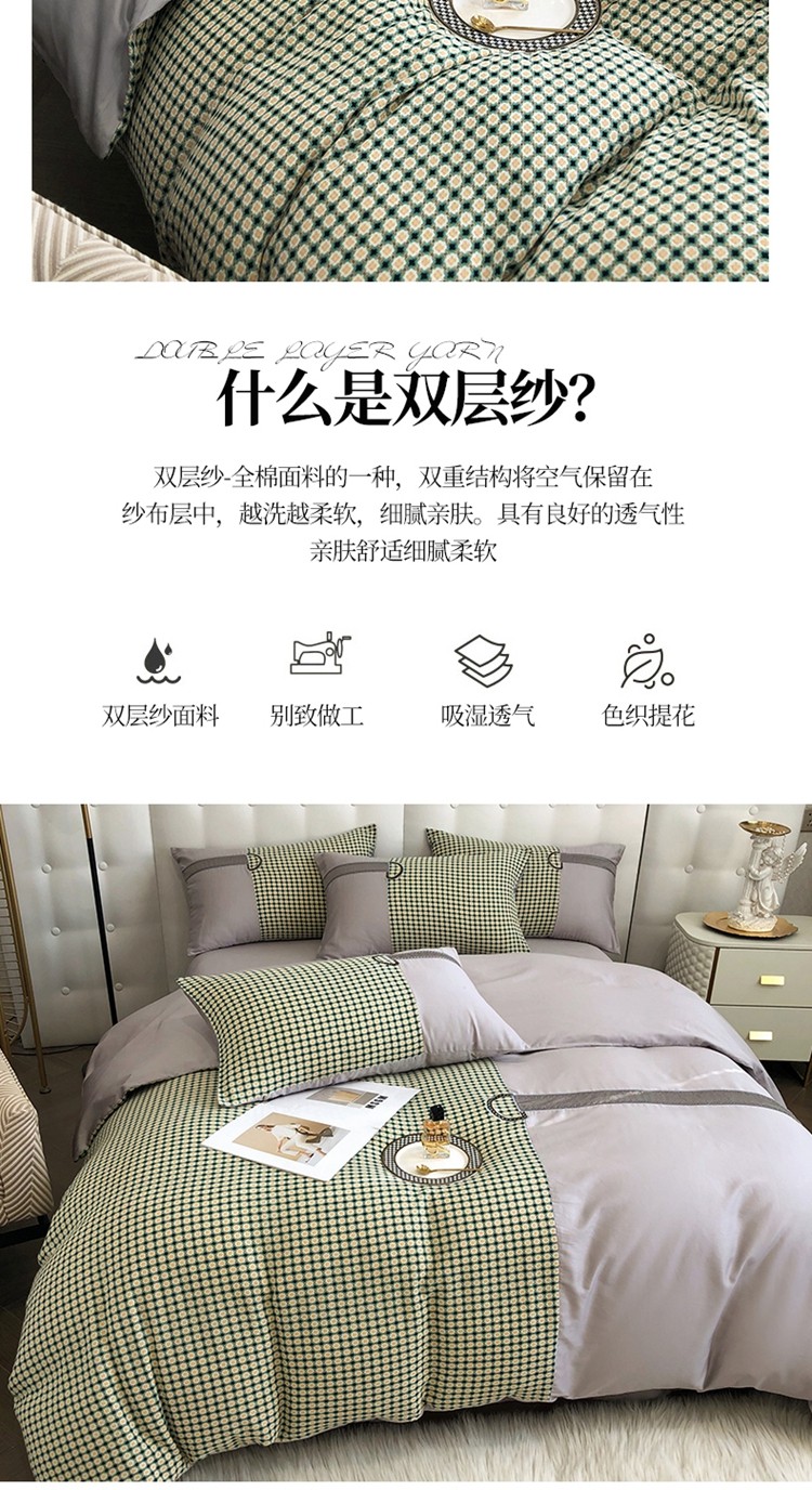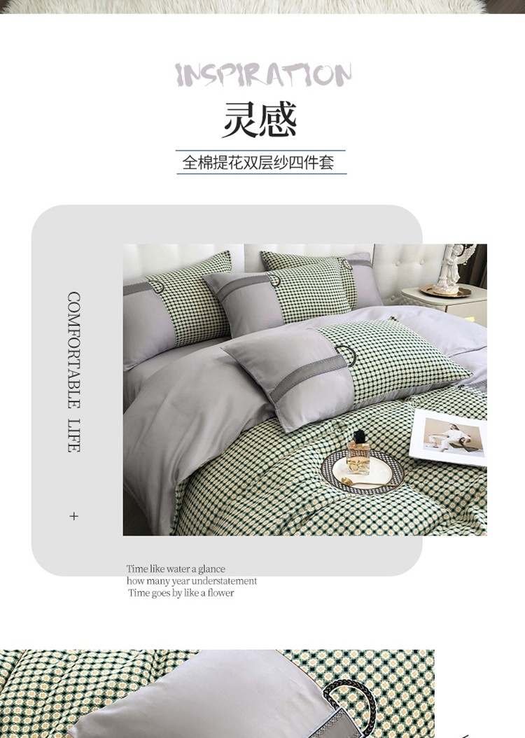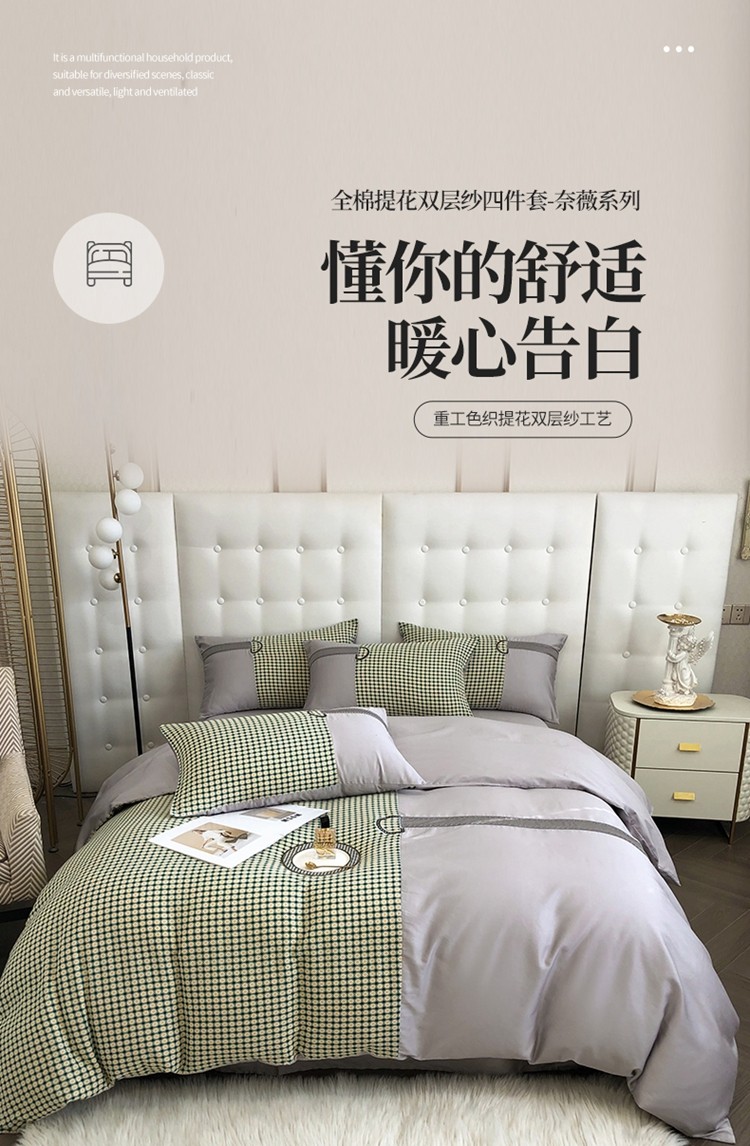 品家居 2025新款全棉提花双层纱四件套-奈薇系列-灰绿