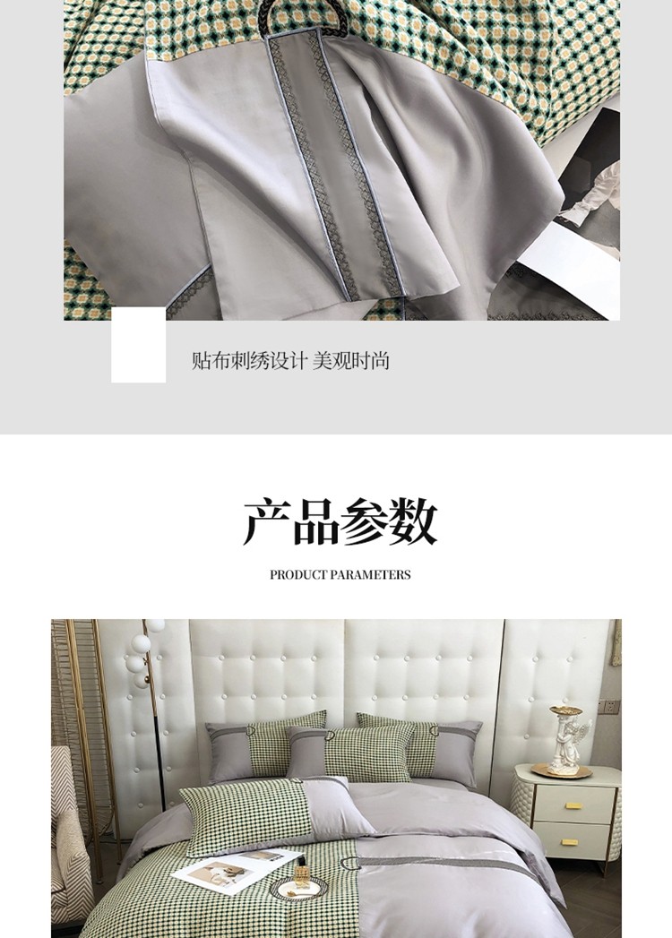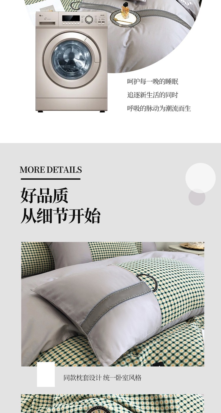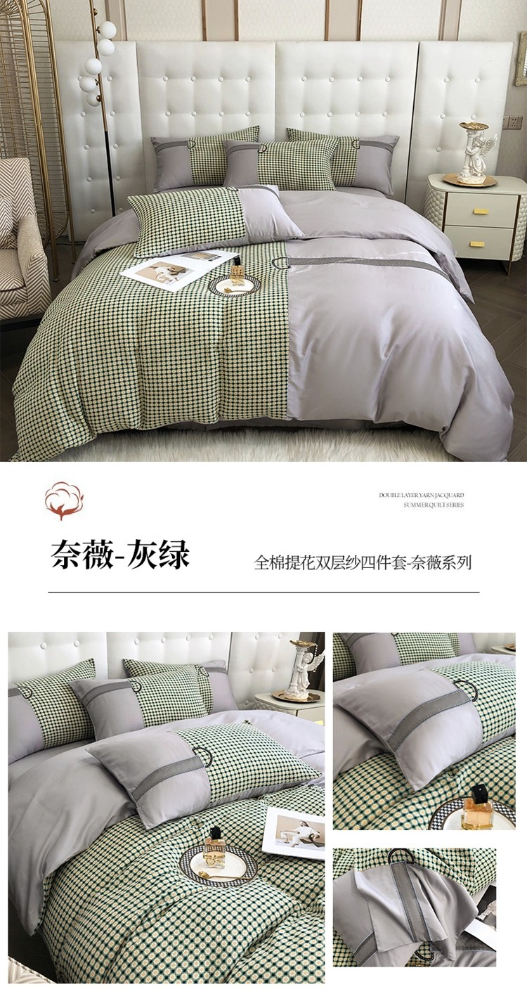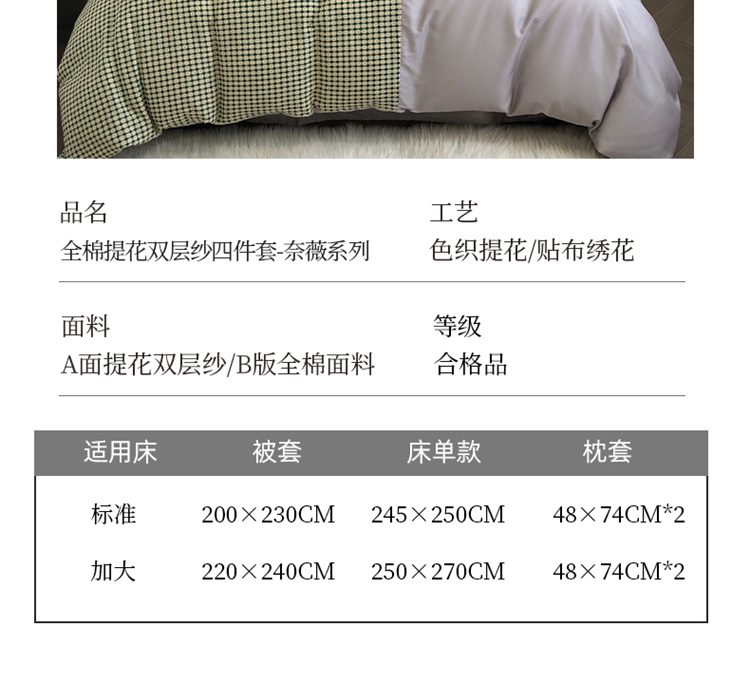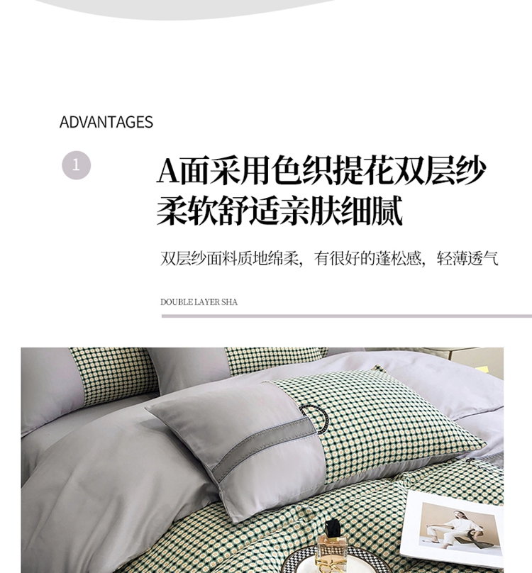 商品名称:品家居 2025新款全棉提花双层纱四件套-奈薇系列-灰绿