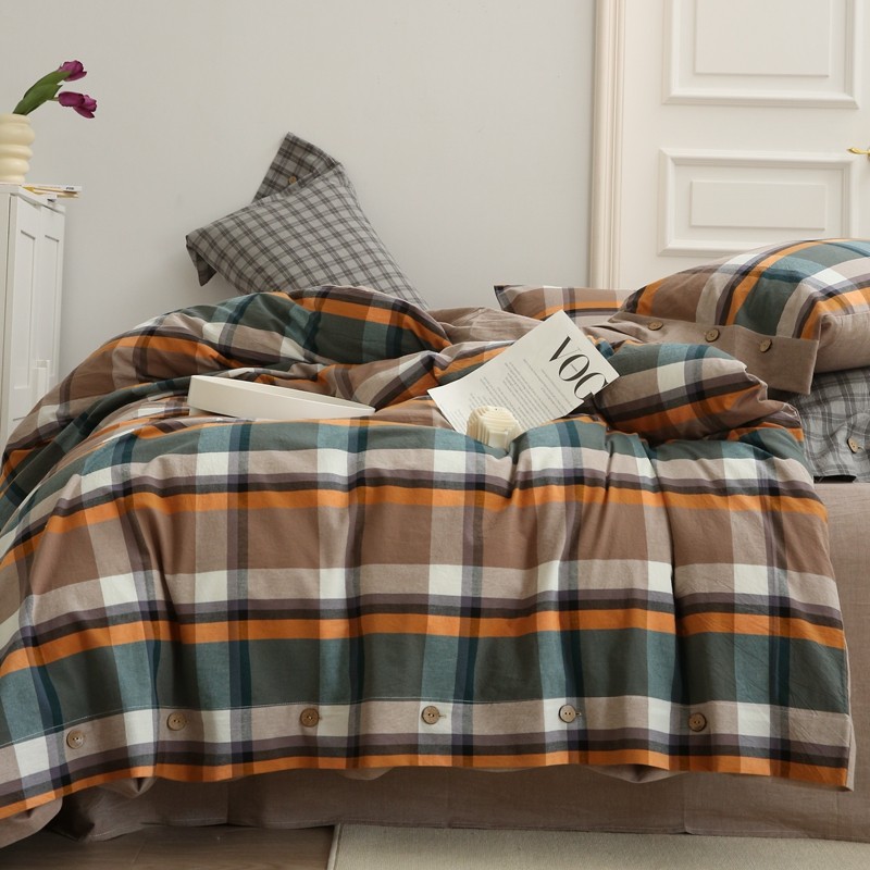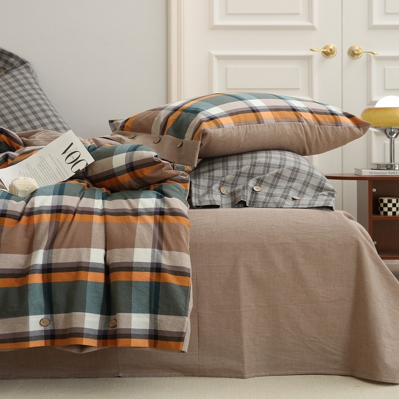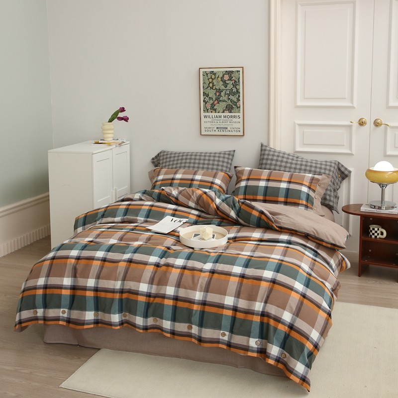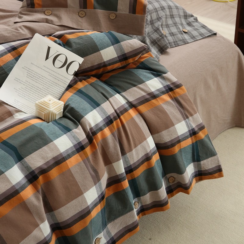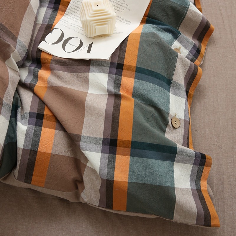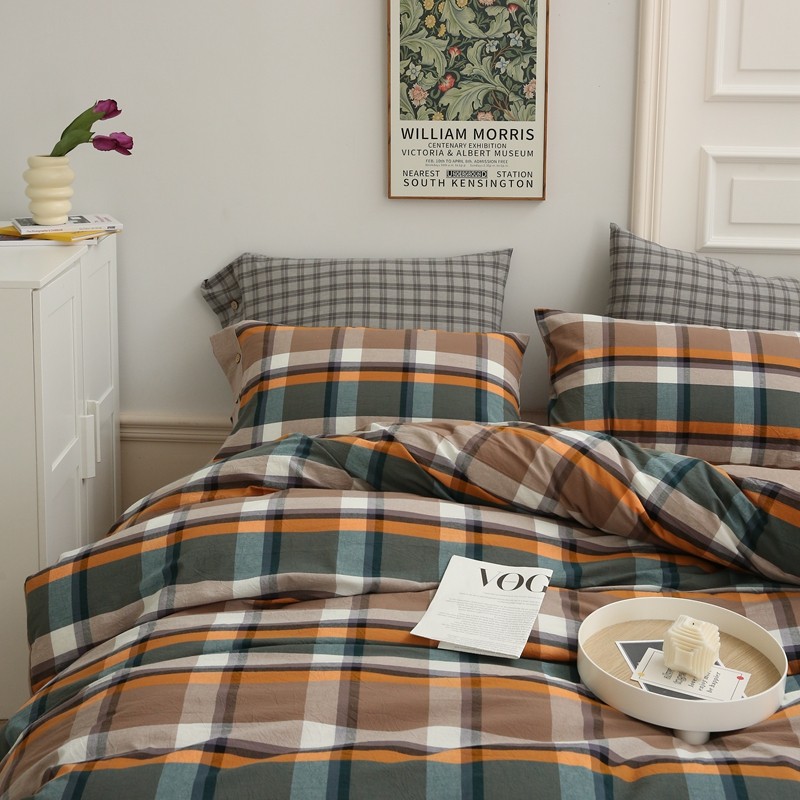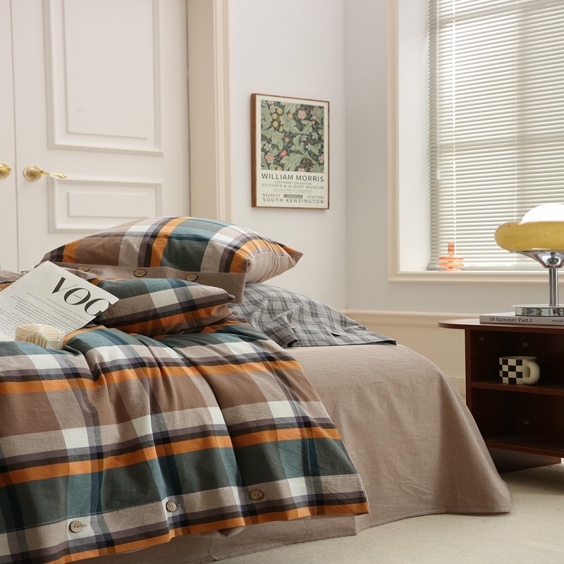 榻尚家居 2023新款经典田园格子色织水洗棉四件套系列 华沙(棕绿)