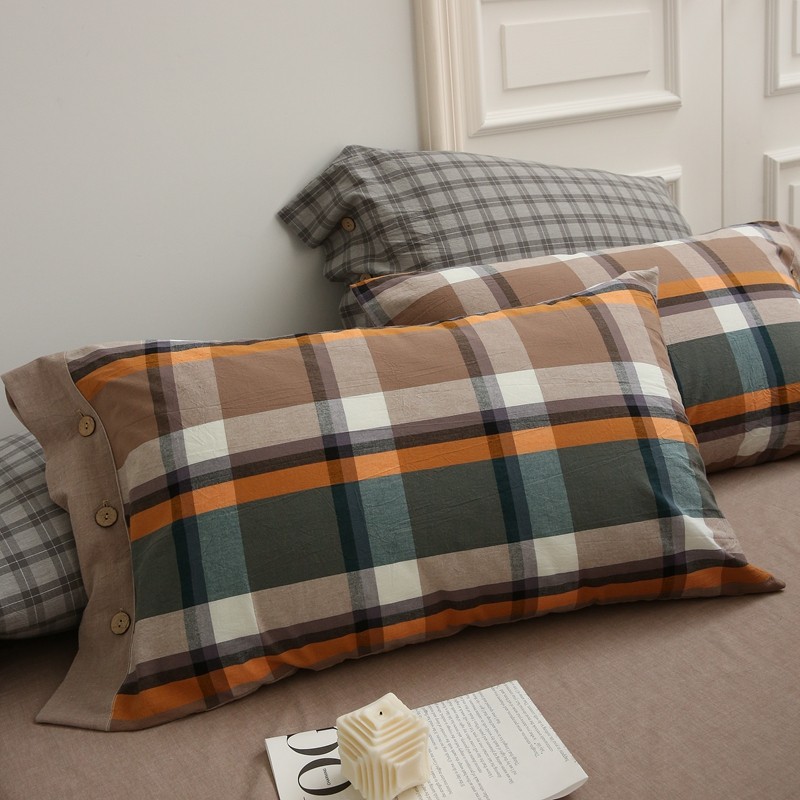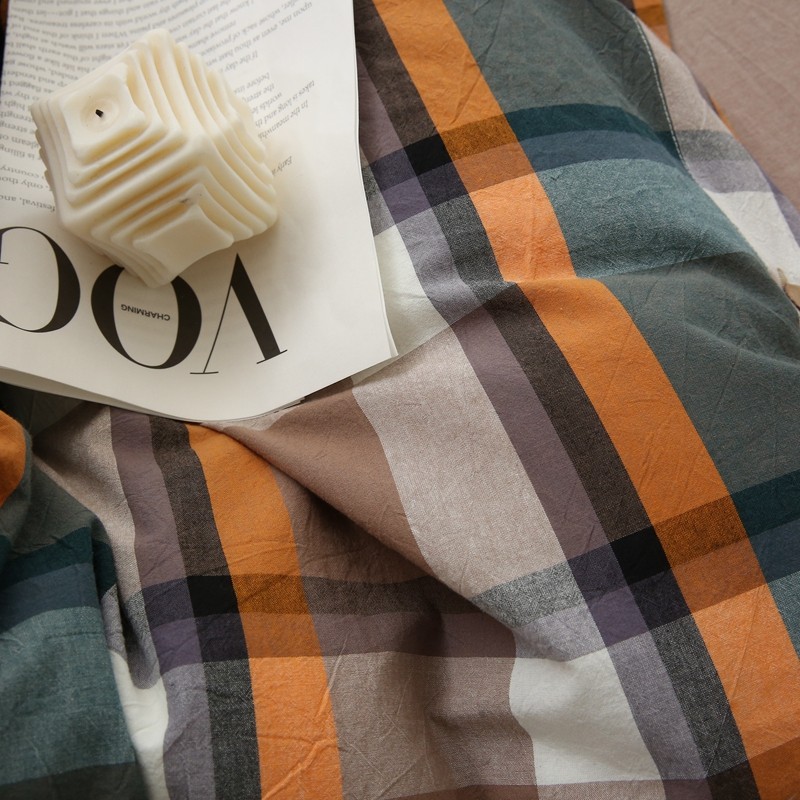 商品名称:榻尚家居 2023新款经典田园格子色织水洗棉四件套系列 华沙(棕绿)