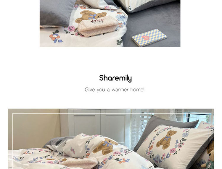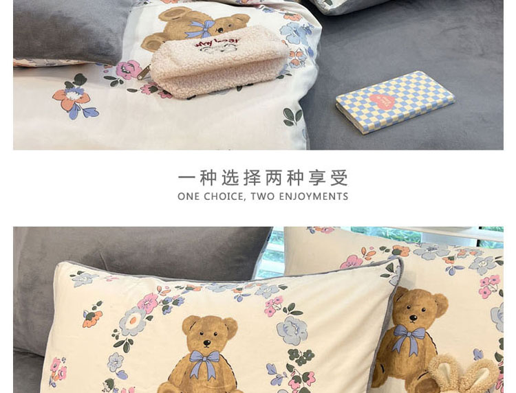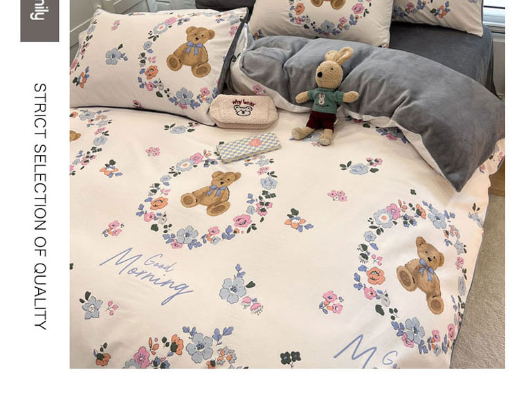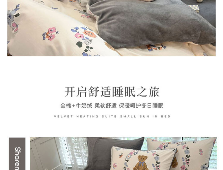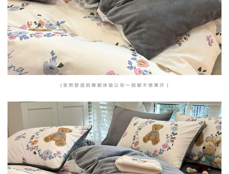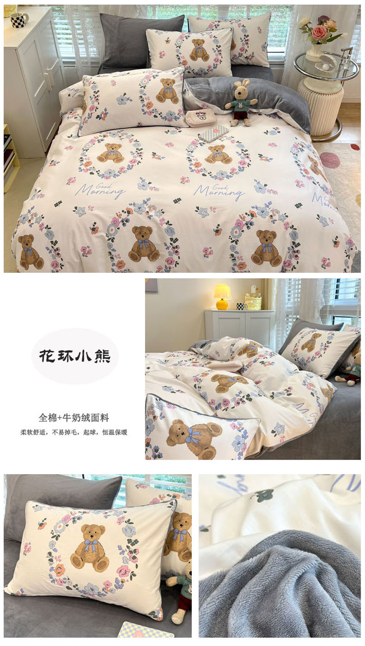 当前位置: 91家纺网 > 商品网购 > 床品套件 > 四件套 > 牛奶绒四件套 > 梦家居 2022新款秋冬新品全棉加牛奶绒四件套花环小熊绒