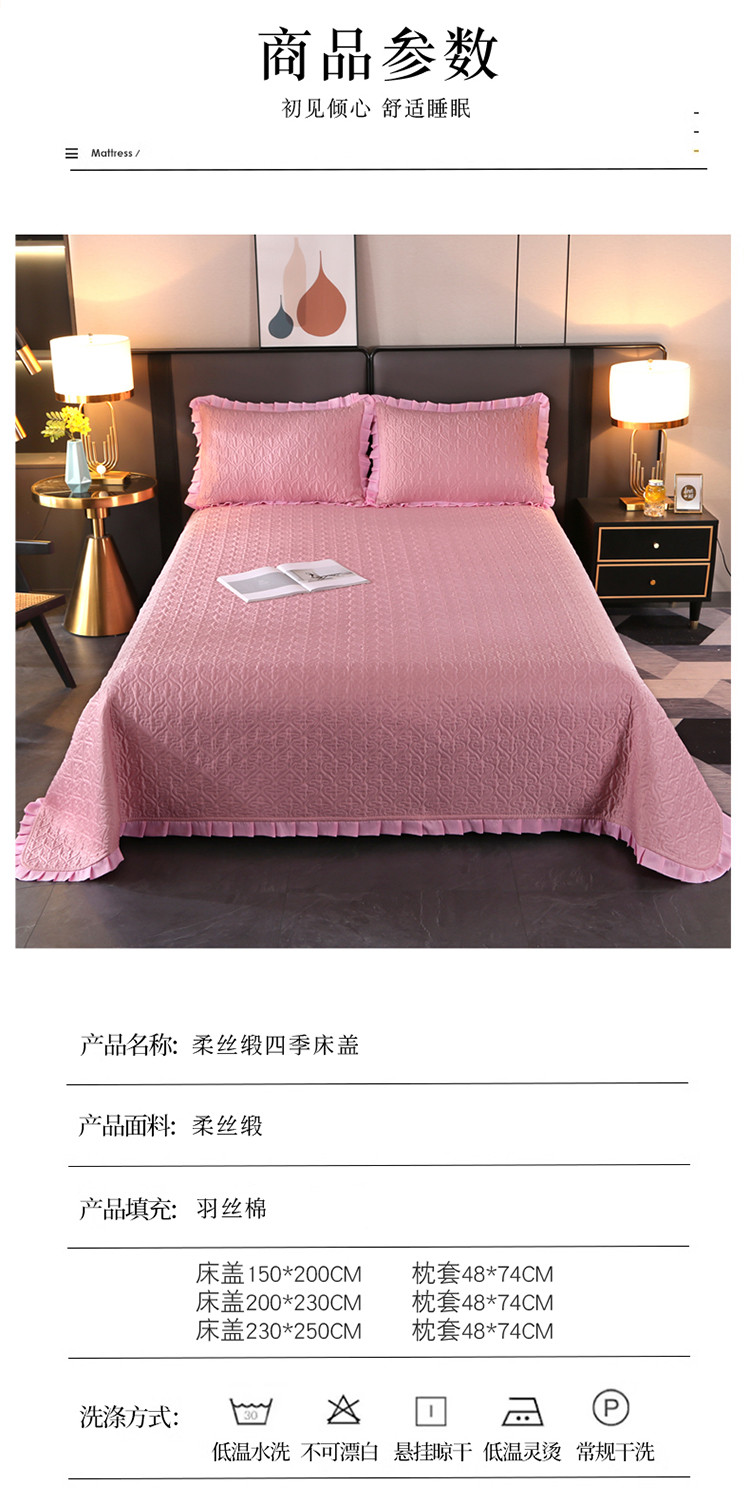 商品名称:佳梦家纺 2023新款柔丝缎四季床盖 粉色