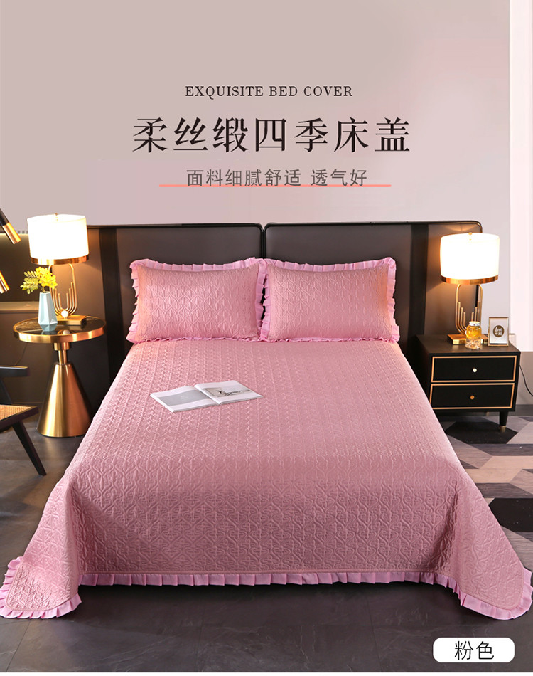 佳梦家纺 2023新款柔丝缎四季床盖 粉色