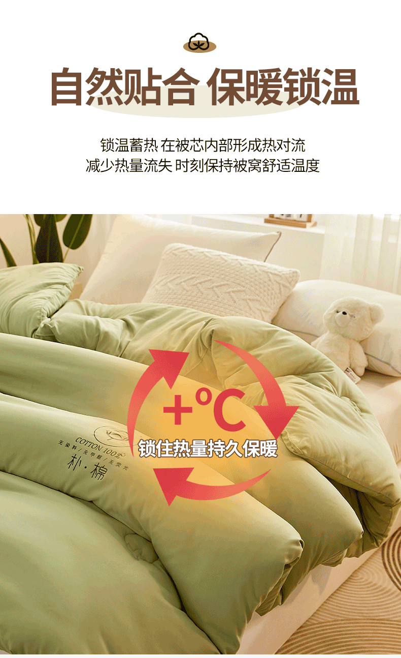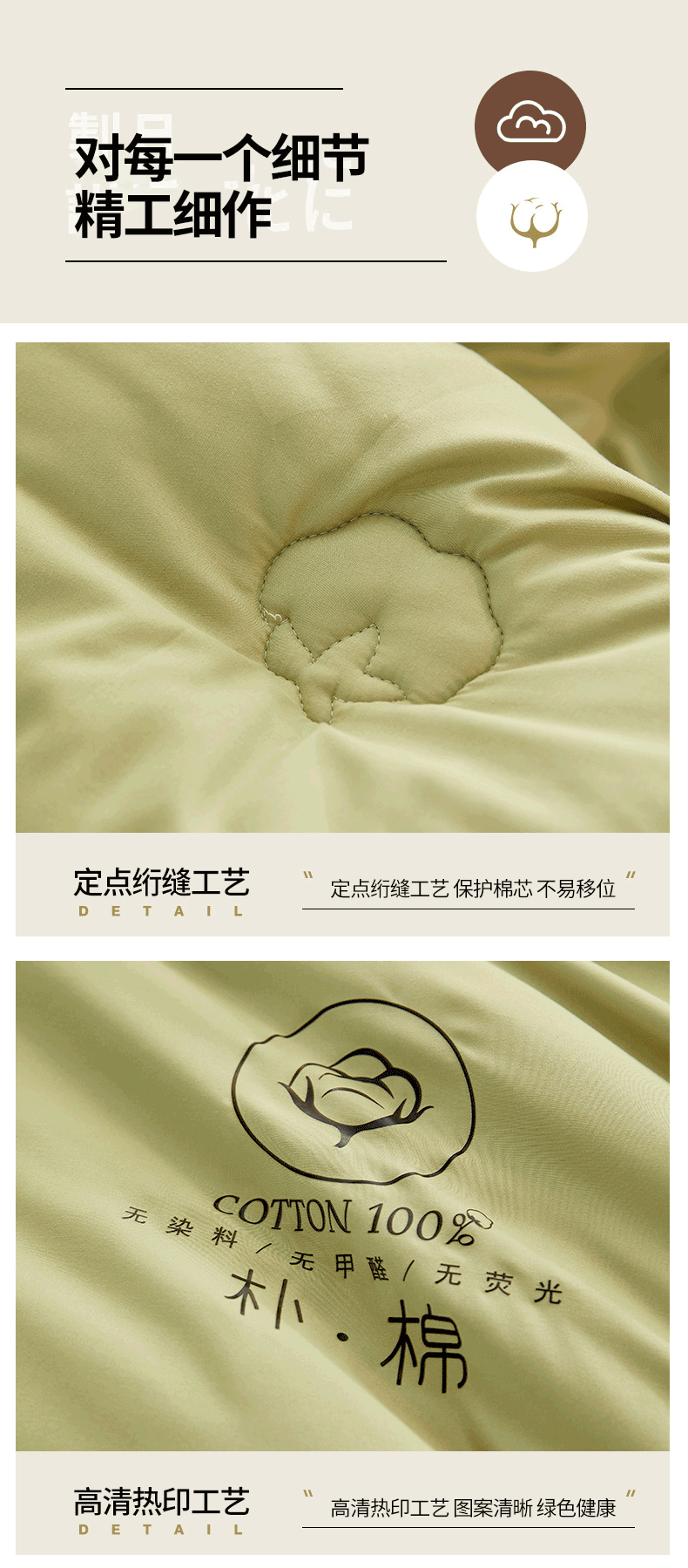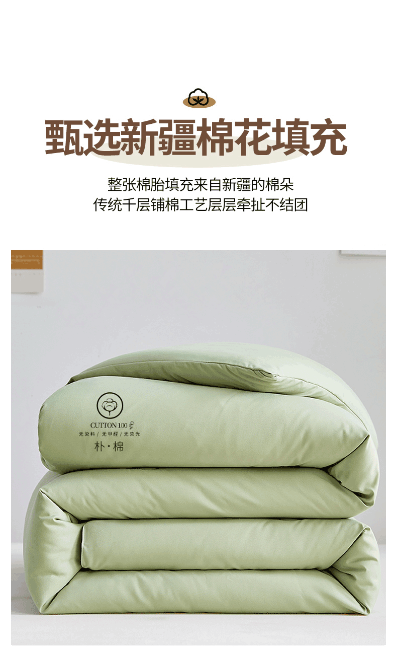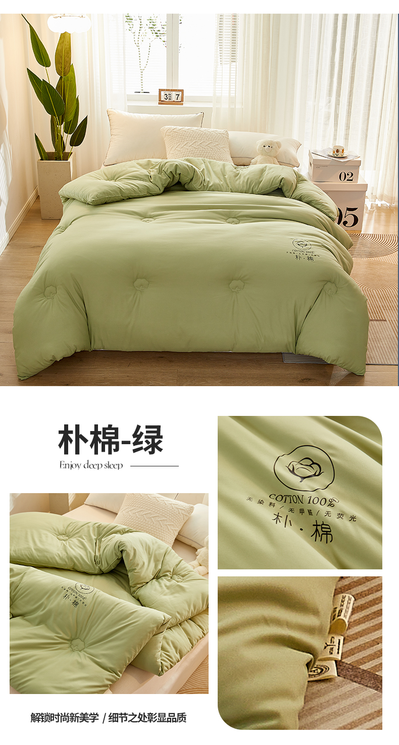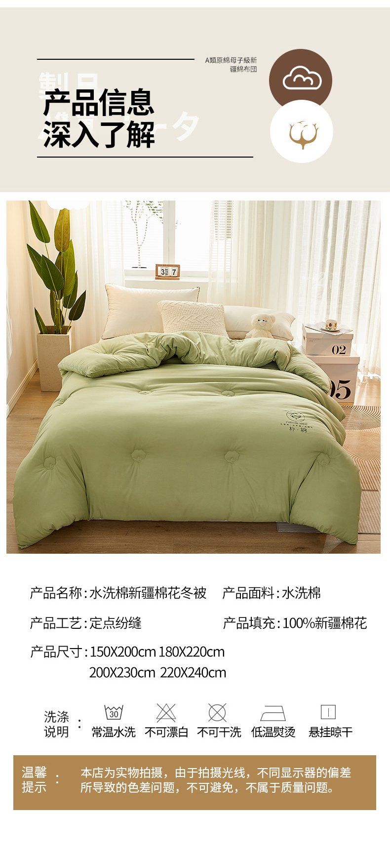 格子铺 2023新款水洗棉棉花冬被 朴棉-绿