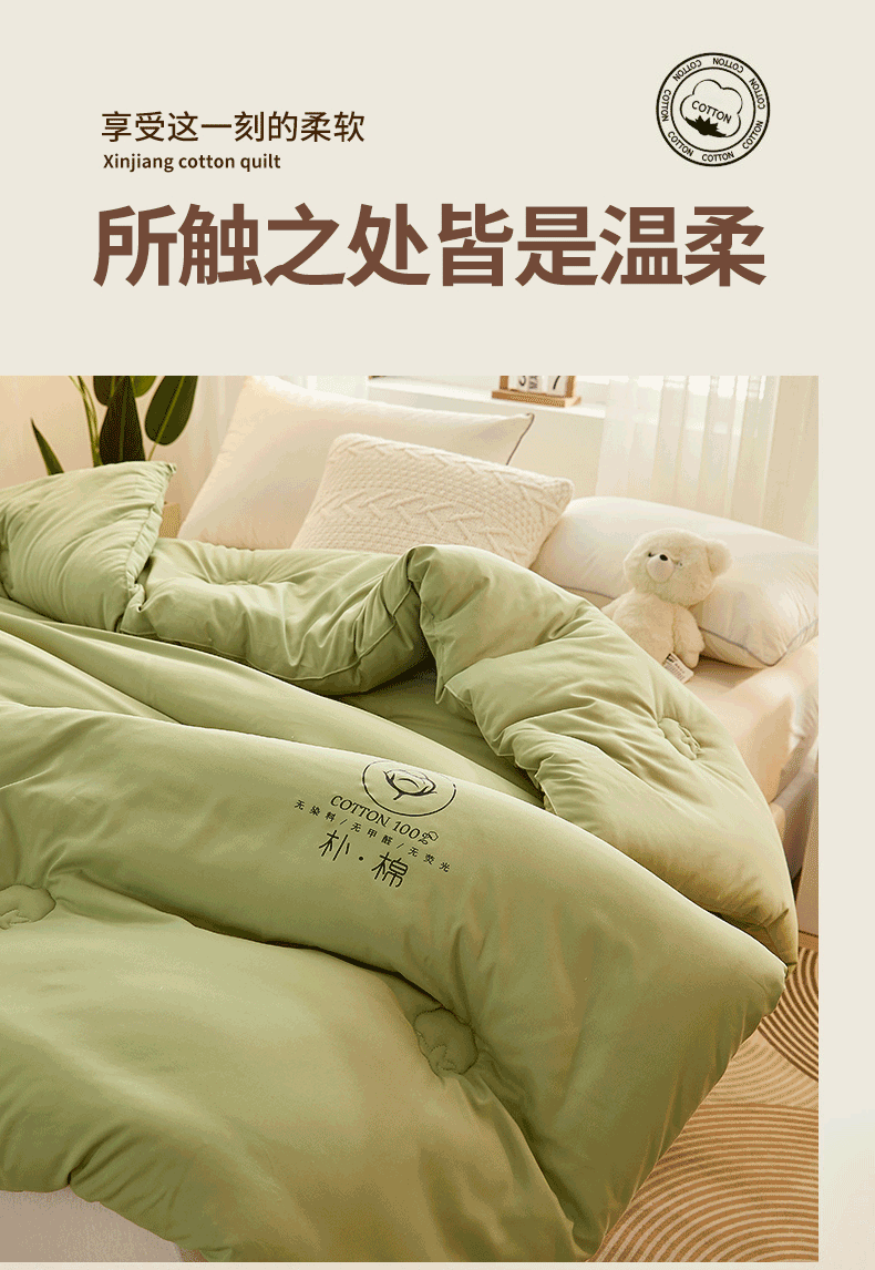 当前位置: 91家纺网 > 商品网购 > 被子 > 冬被 > 格子铺 2023新款水洗棉棉花冬被 朴棉-绿