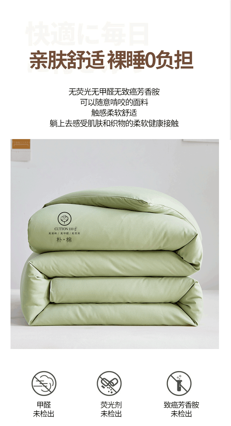 • 91家纺网 家纺一手货源 找家纺 格子铺2024新款纯色全棉水洗棉棉花夏被 豆绿,豆绿