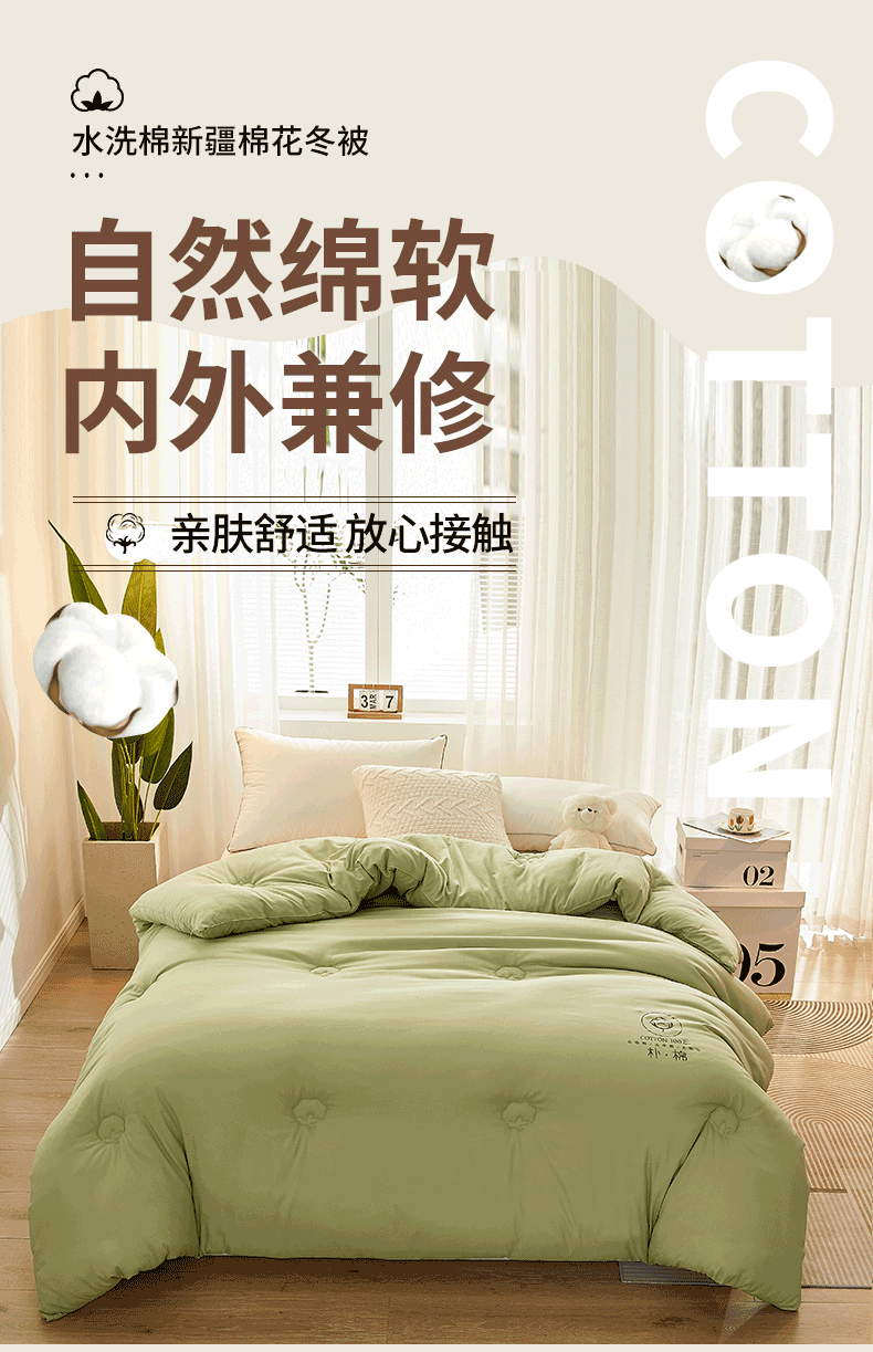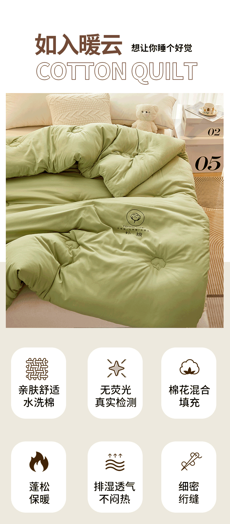 • 91家纺网 家纺一手货源 找家纺 格子铺 2023新款水洗棉棉花冬被 朴棉-绿